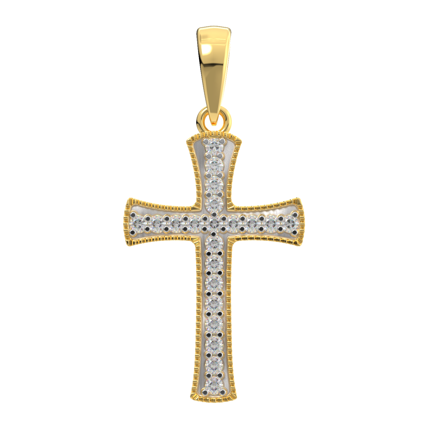 Ladies 14k Yellow Diamonds Gold Cross Pendant, 18mm