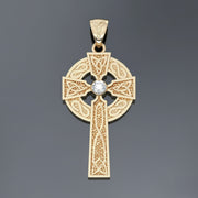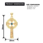 Men's Solid 10k or 14k Yellow or White Gold Celtic Knot Cross Pendant with 15 Optional Birthstones, 39mm