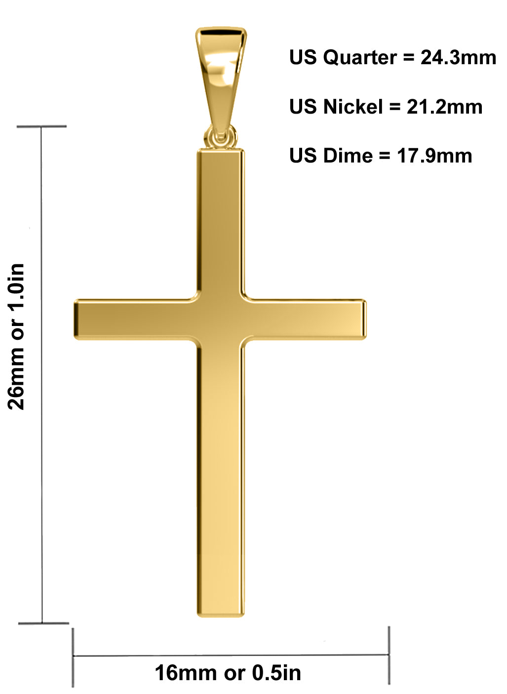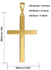 Ladies 14k Yellow Solid Gold 2.5mm x 2.5mm Box Cross Pendant Necklace, 26mm