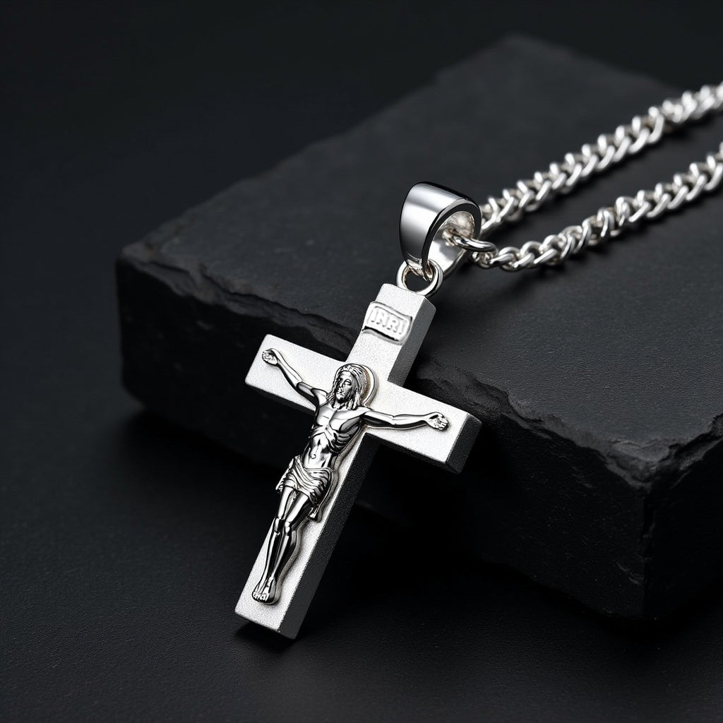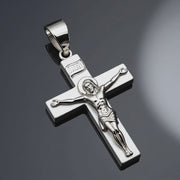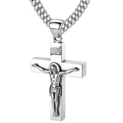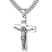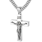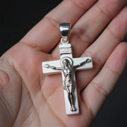 Men's Large 925 Sterling Silver Crucifix Cross Pendant Necklace, 45mm