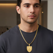 Men's 10k or 14K Yellow Gold Saint Michael Pendant Necklace, 36mm