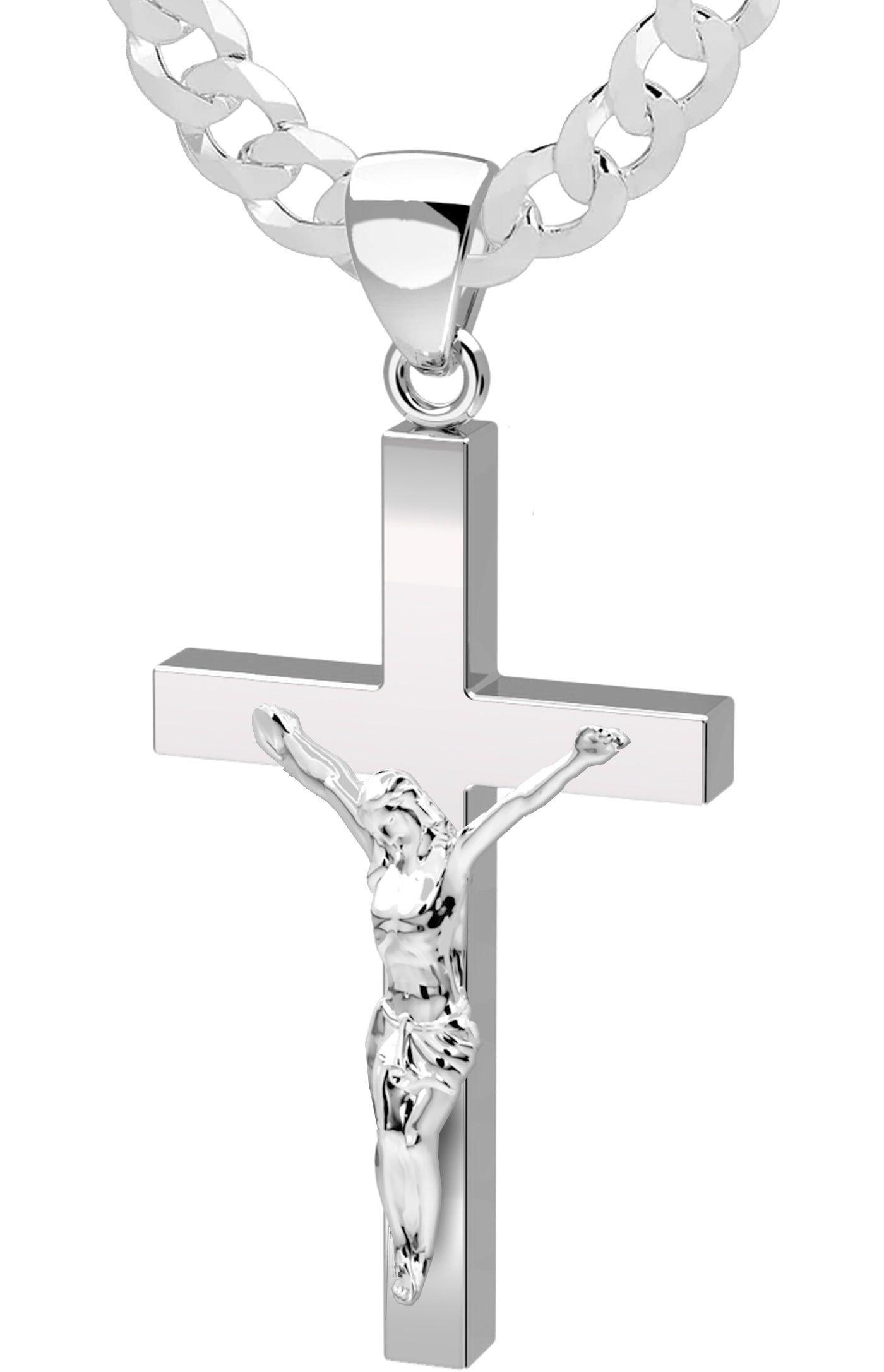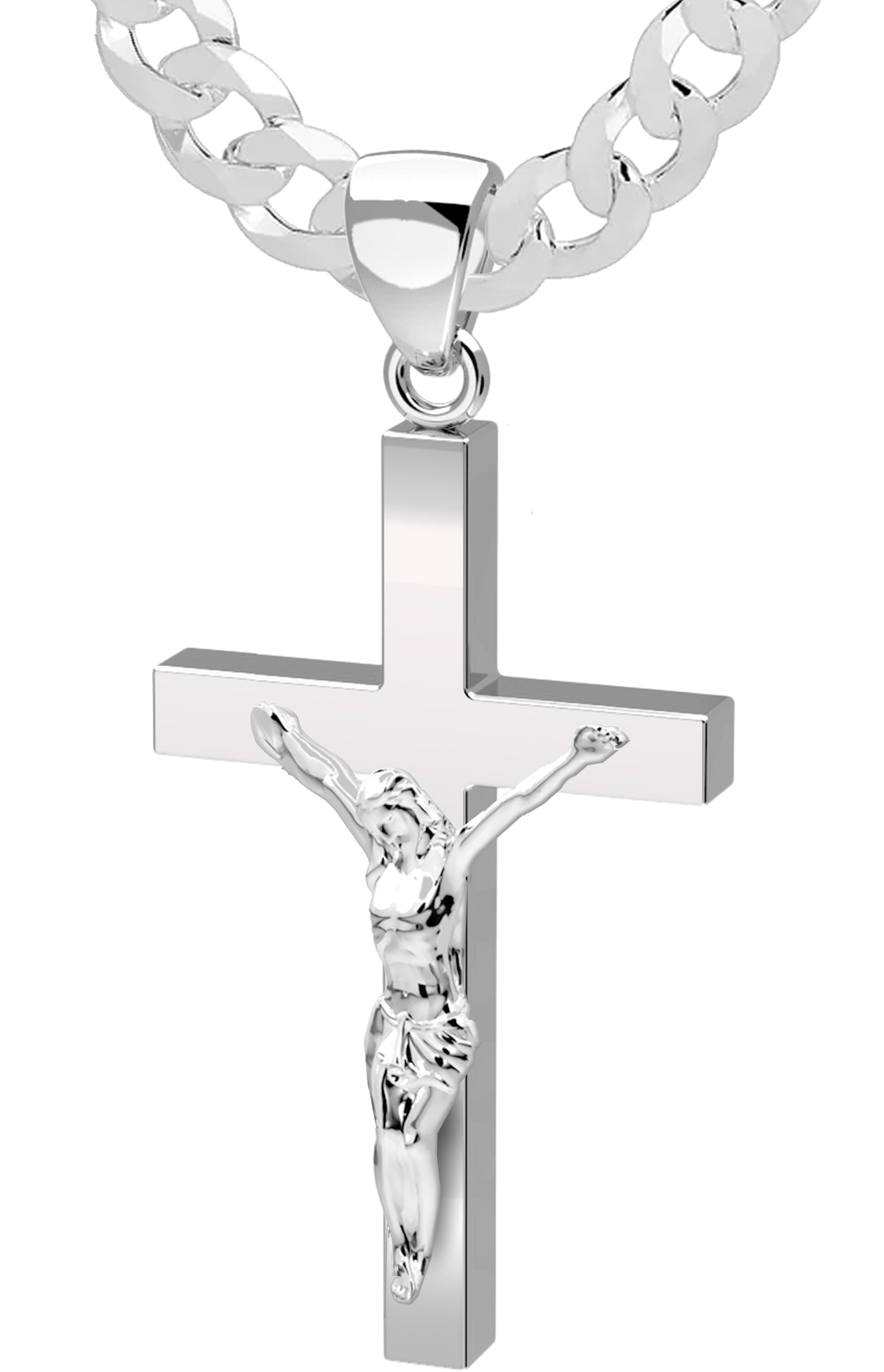Proudly display your faith with our collection of religious jewelry. Handcrafted from 925 sterling silver, this crucifix cross pendant features a 3d box design, solid construction, larger bail to accommodate chains up to 6mm and a high polished finish. Wearing a cross pendant provides comfort and protection. It is a constant reminder of God's love and illustrates your commitment to Jesus Christ.