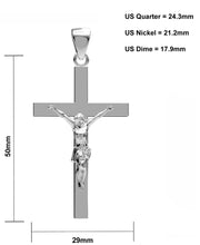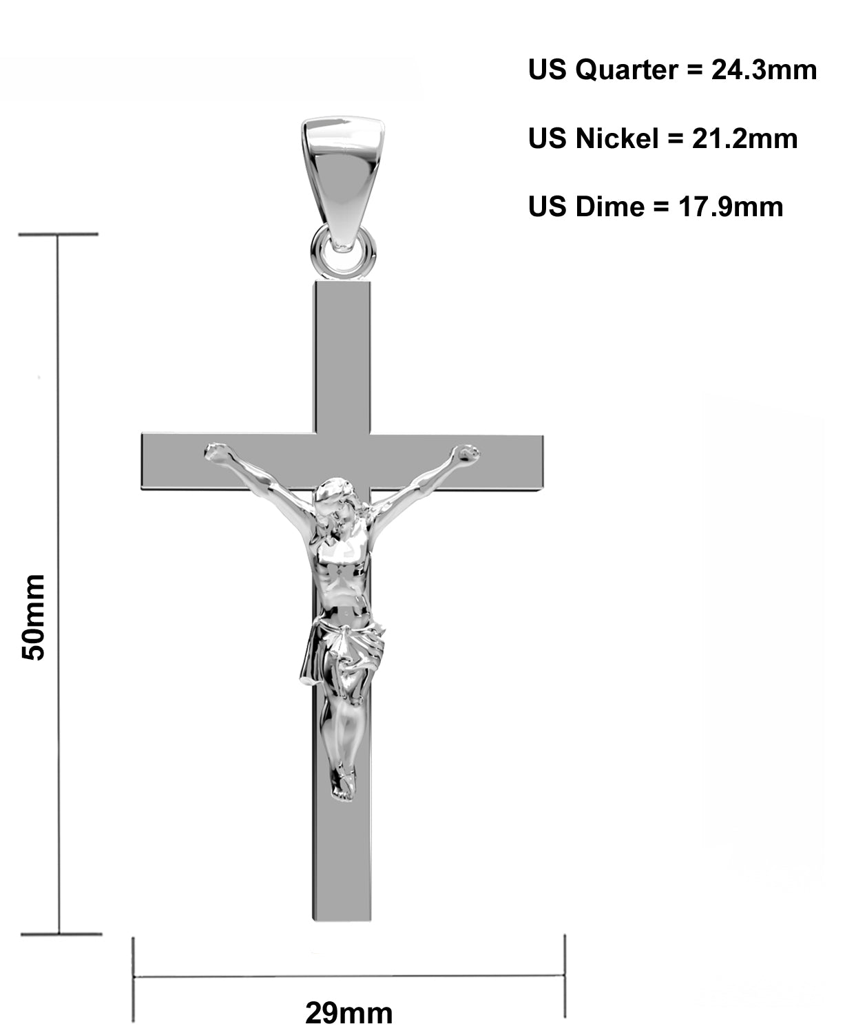 Men's XL Heavy Solid 2in 925 Sterling Silver Crucifix Cross Pendant Necklace, 50mm