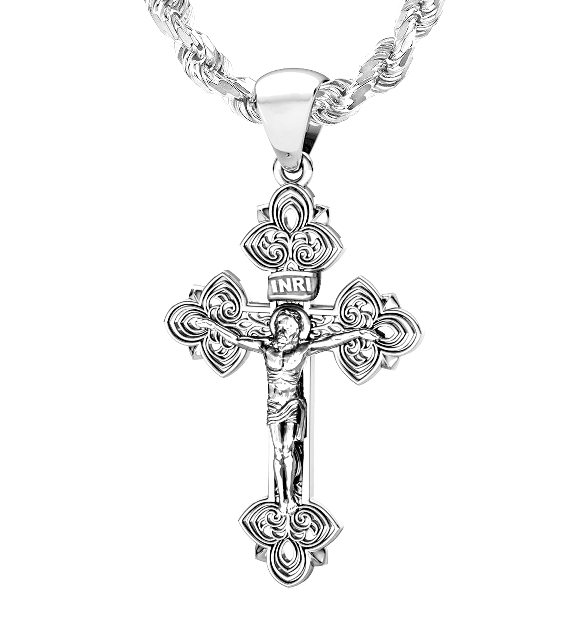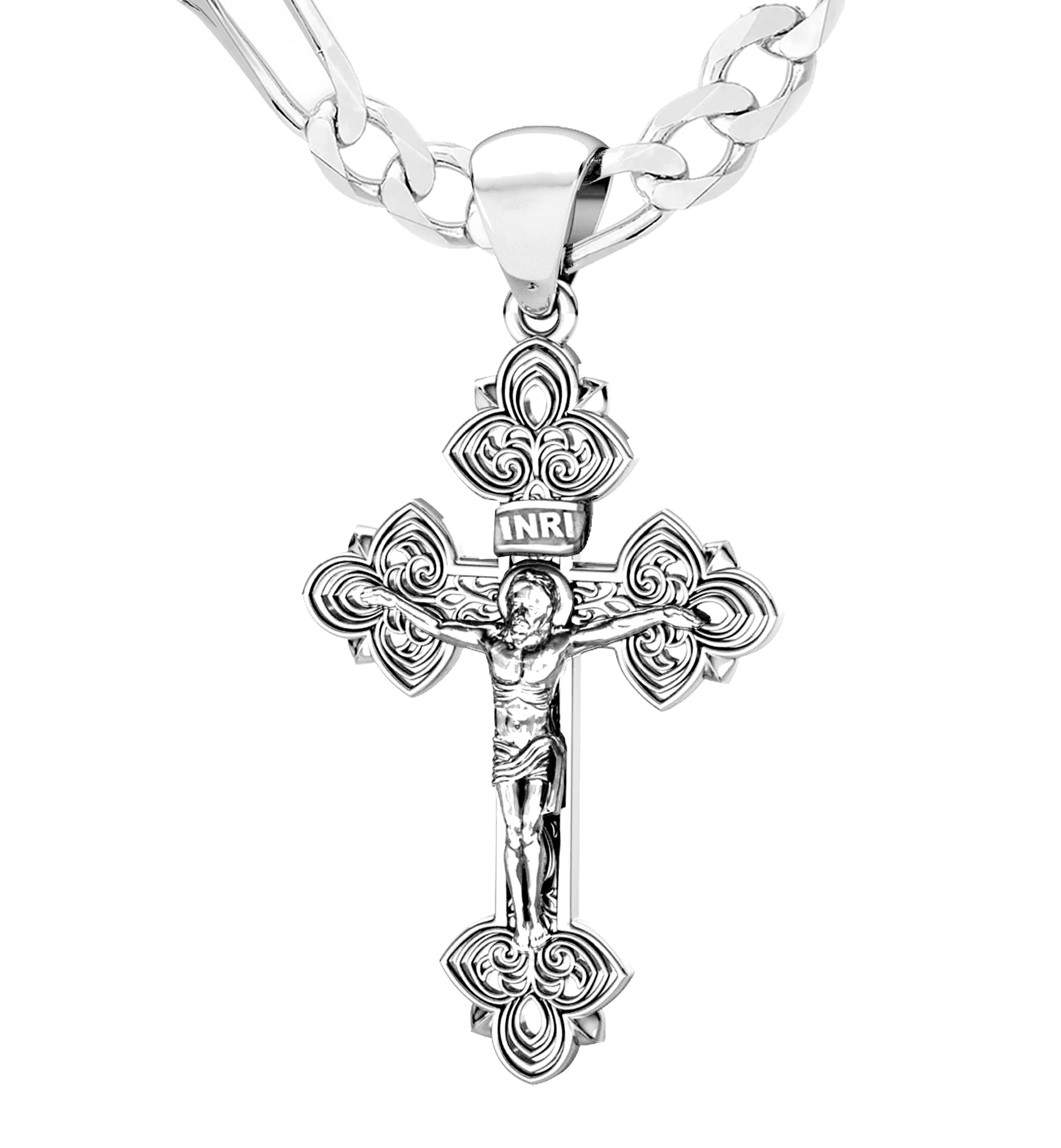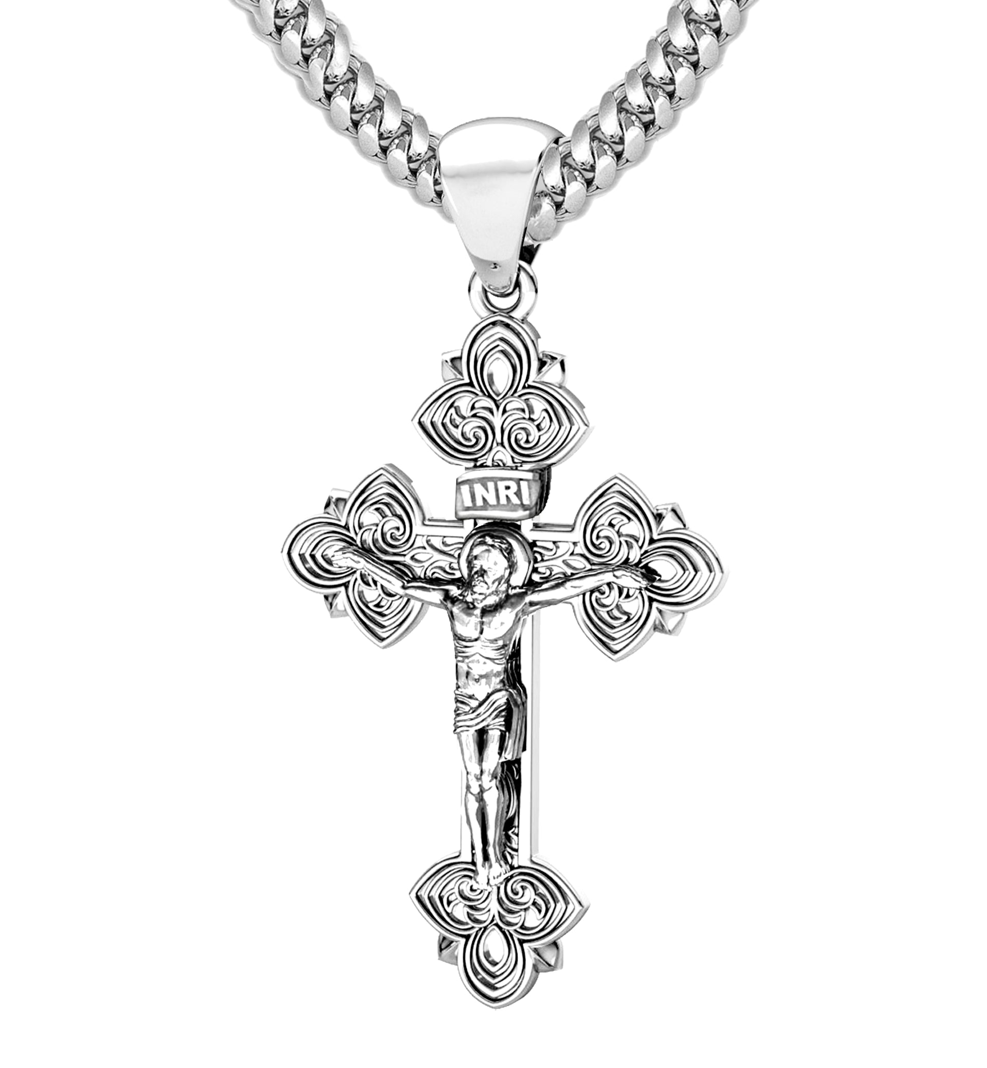 Proudly display your faith with our collection of religious jewelry. Handcrafted from 925 sterling silver, this XXL crucifix cross pendant features a Fleur-de-lis design and solid construction. Wearing a cross pendant provides comfort and protection. It is a constant reminder of God's love and illustrates your commitment to Jesus Christ.