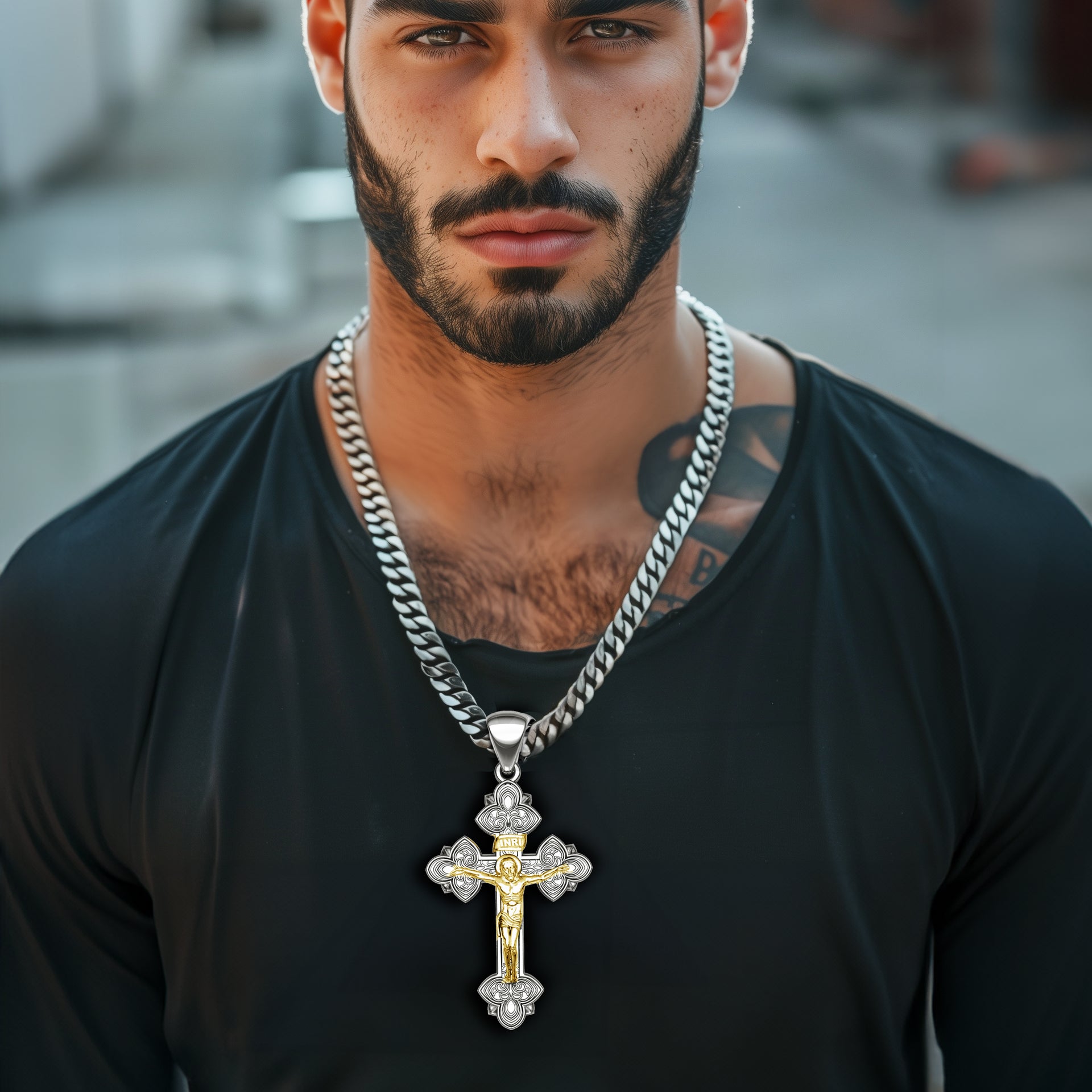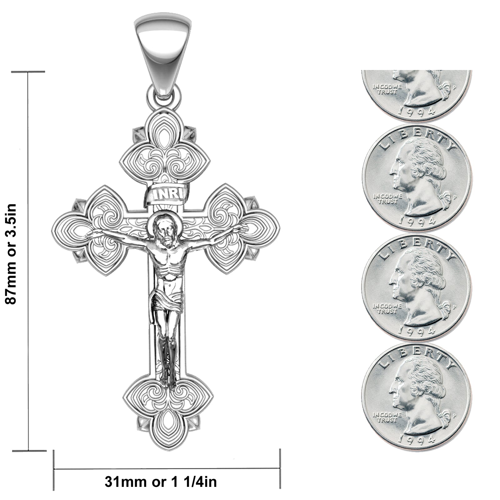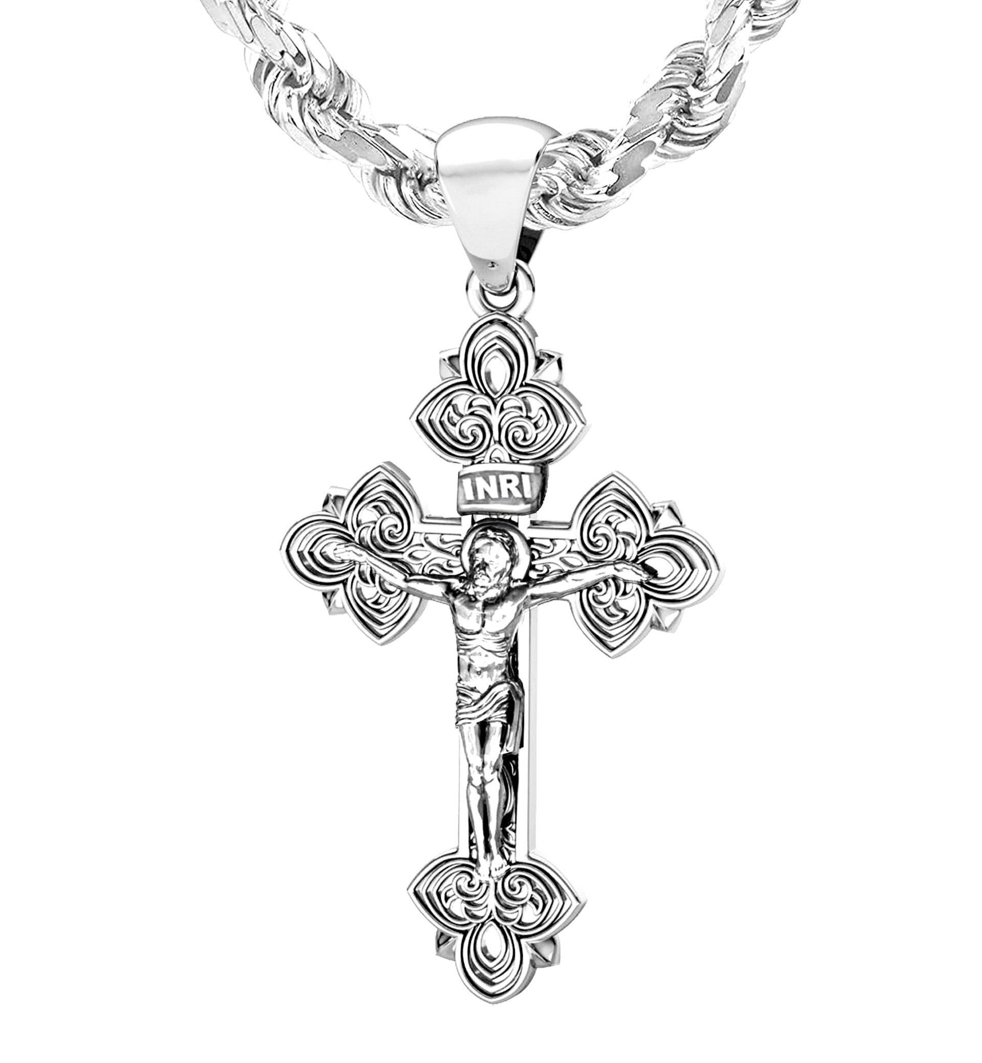 Proudly display your faith with our collection of religious jewelry. Handcrafted from 925 sterling silver, this XXL crucifix cross pendant features a Fleur-de-lis design and solid construction. Wearing a cross pendant provides comfort and protection. It is a constant reminder of God's love and illustrates your commitment to Jesus Christ.