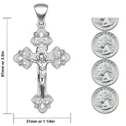 Men's XXL Heavy Solid 3.5in 925 Sterling Silver Cross Crucifix Pendant, 89mm