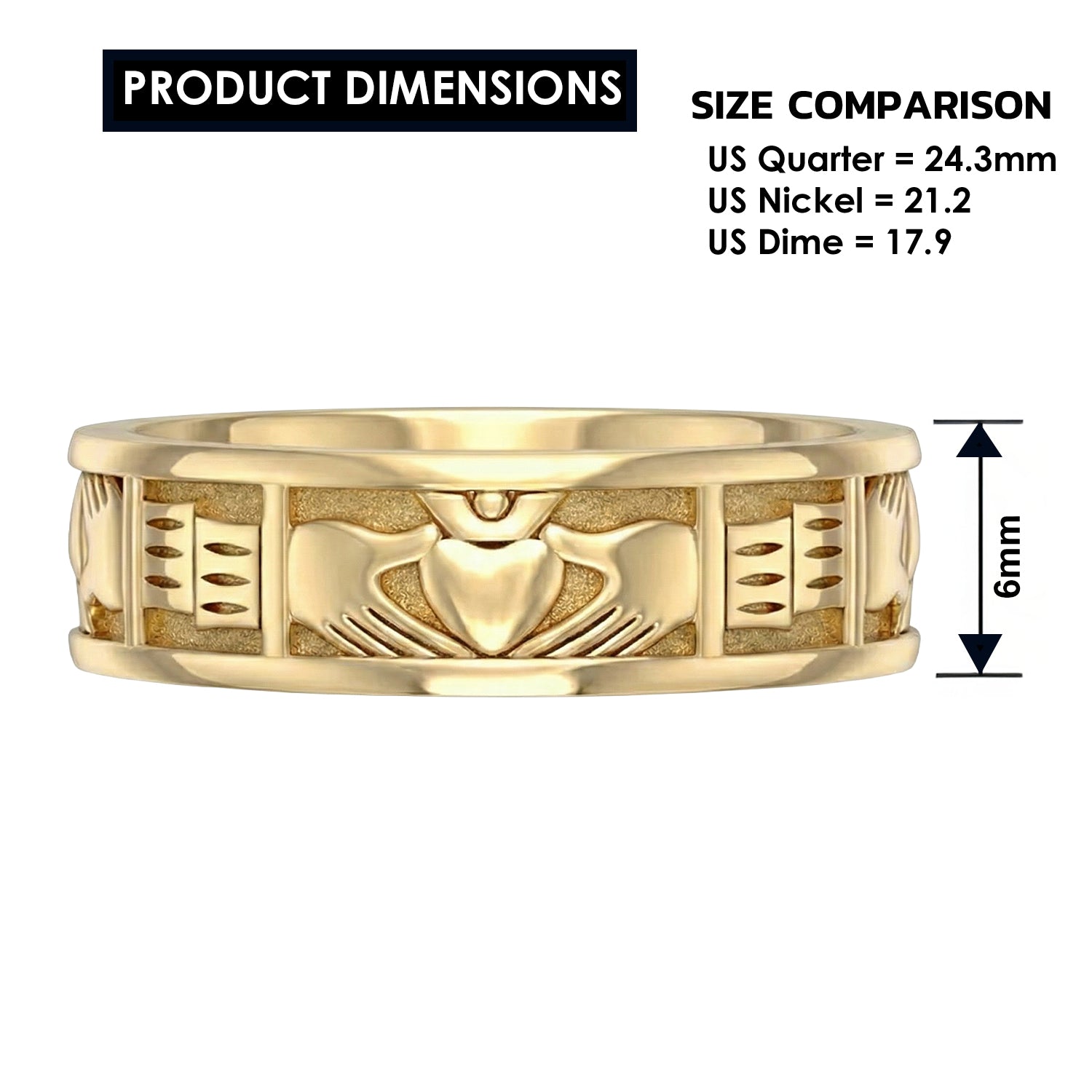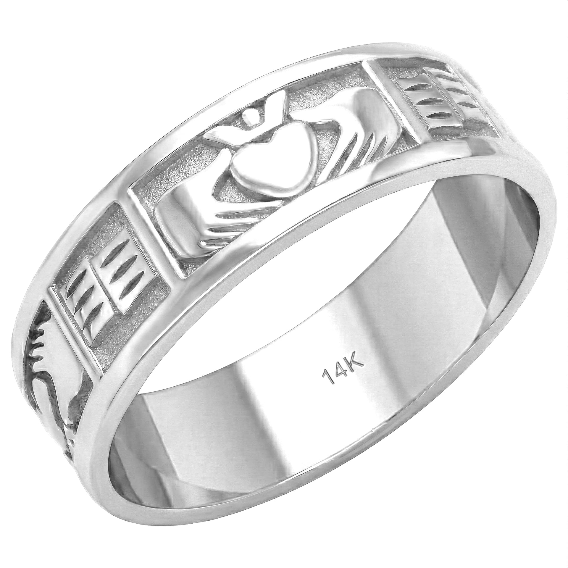 Men' 6mm 10K or 14K Gold Irish Celtic Claddagh Wedding Ring Band