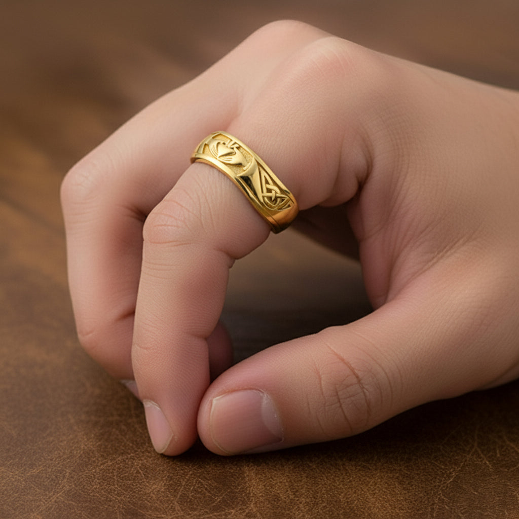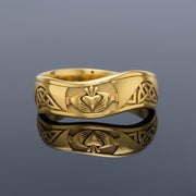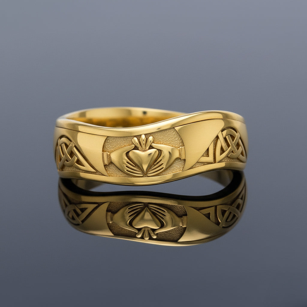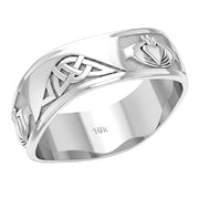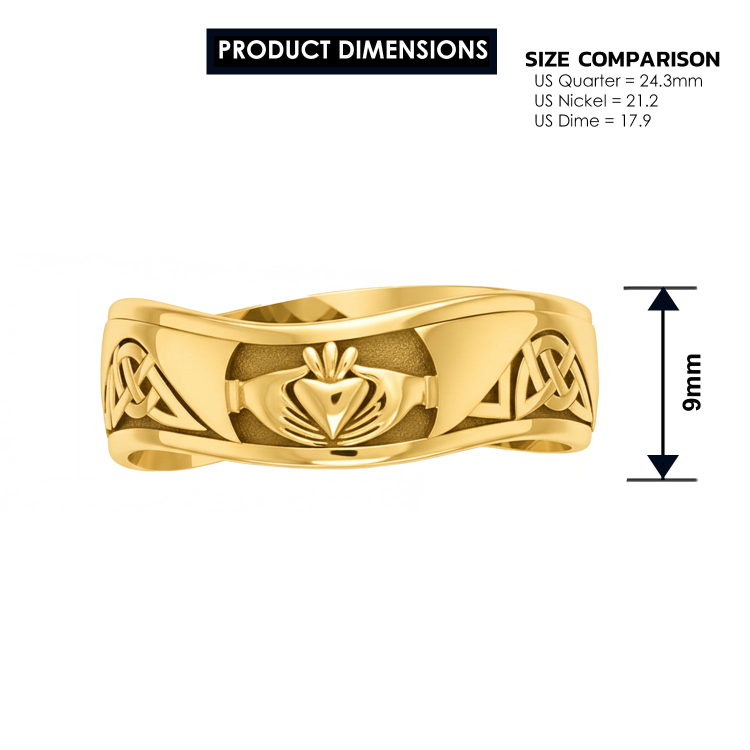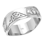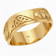 Men's 10k or 14k Yellow or White Gold Modern Irish Celtic Claddagh & Knot Ring Band