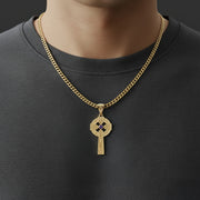 Men's Solid 10k or 14k Yellow or White Gold Celtic Knot Cross Pendant with 15 Optional Birthstones, 39mm