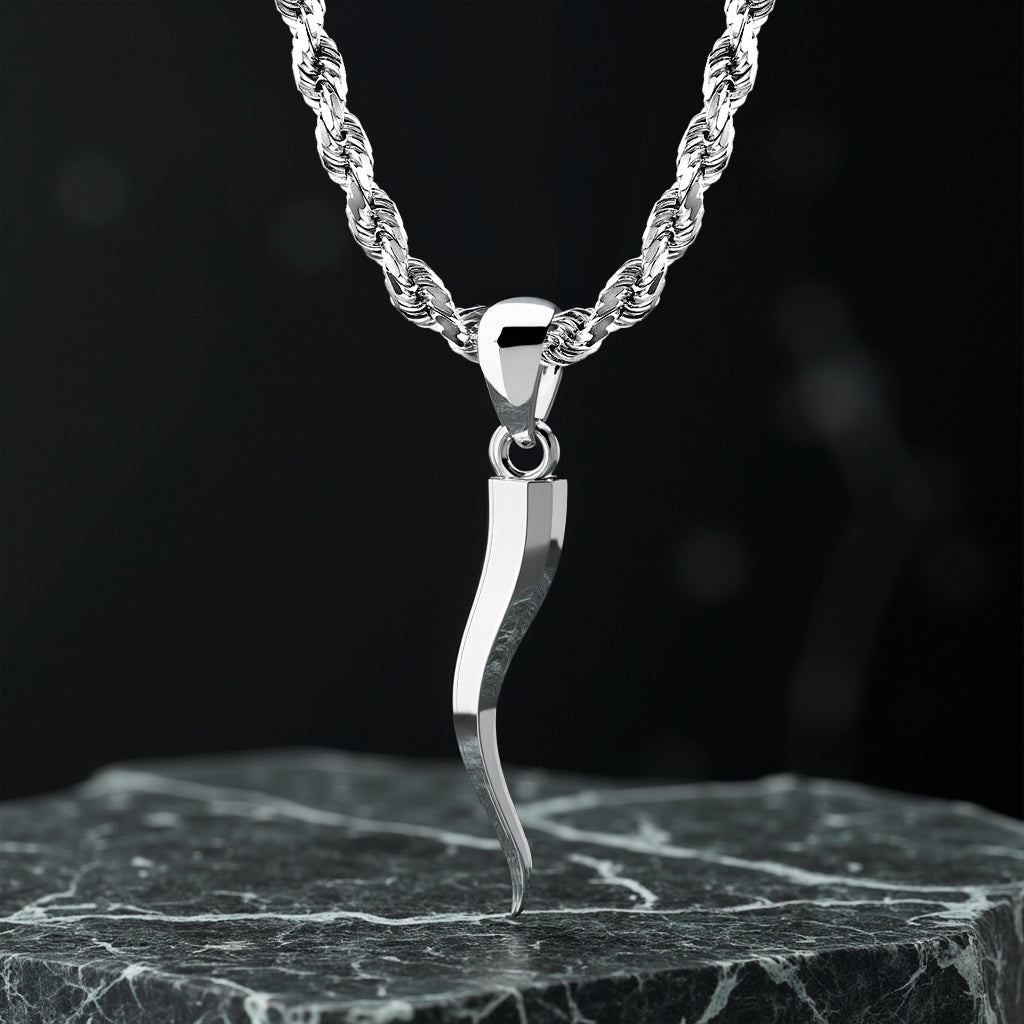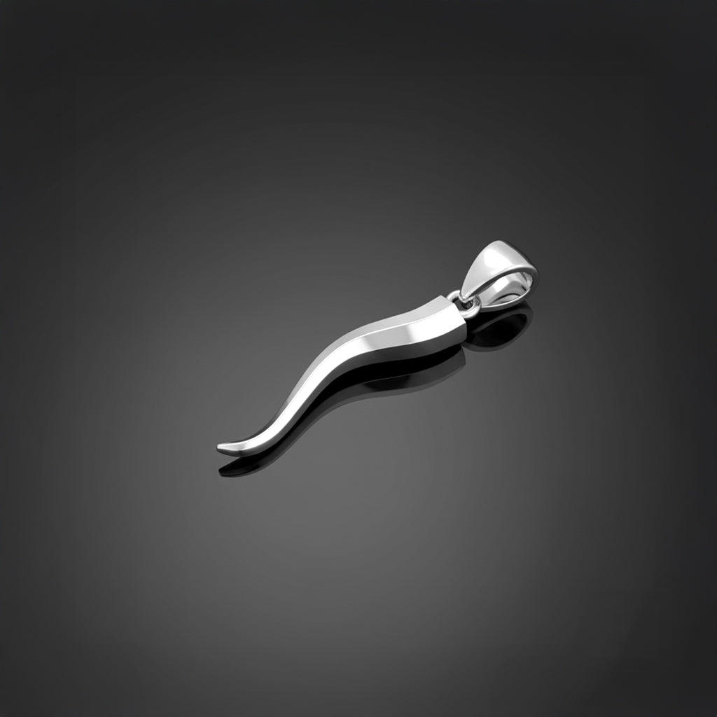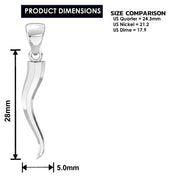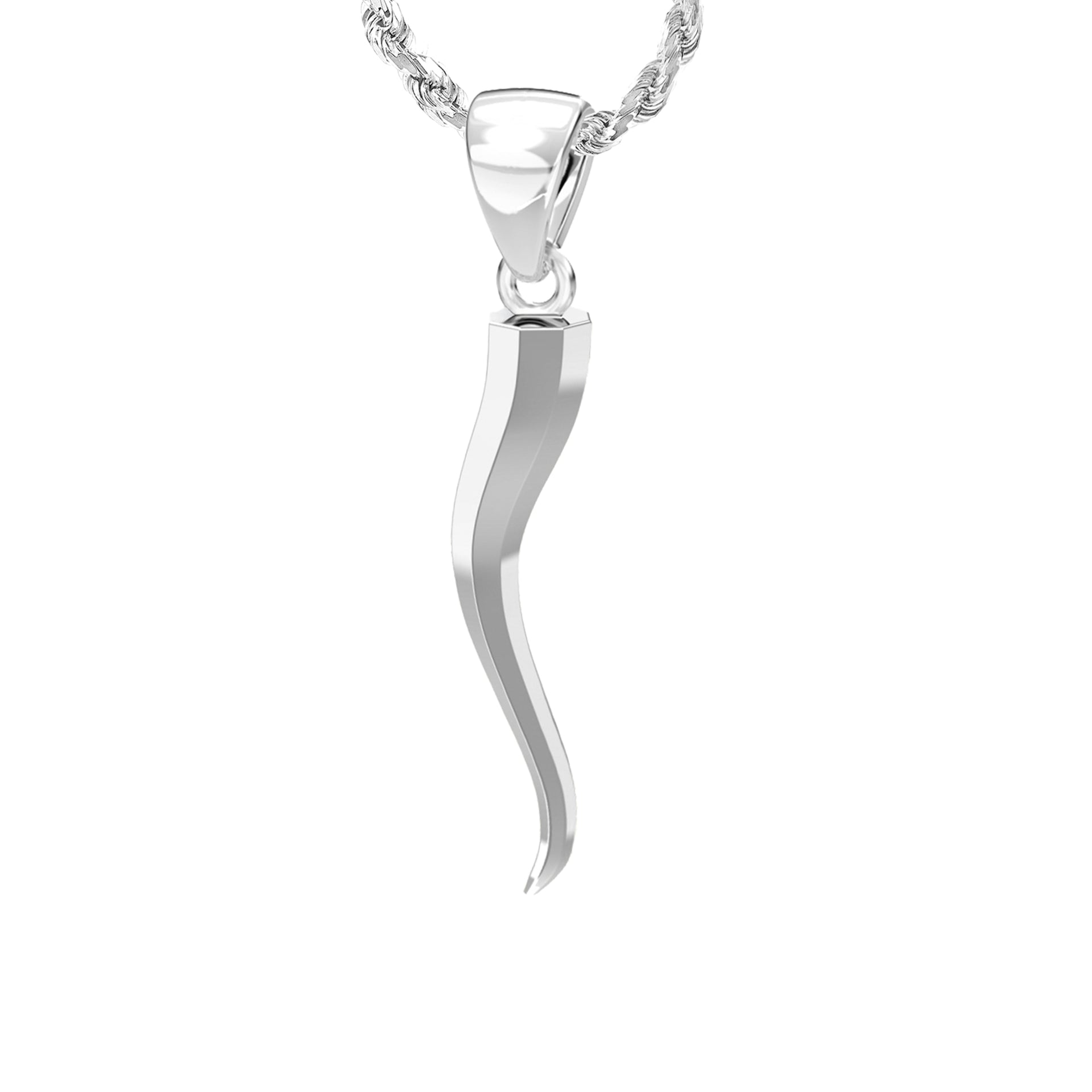 This octagon shaped Italian horn or cornicello amulet is worn for protection against evil spirits or curses. It is popular in the USA with descendants of Italian immigrants and by the general public as a fashion statement alike. Unlike other manufacturers, our Italian horn pendant is solid sterling silver, not hollow.