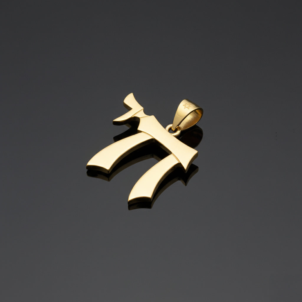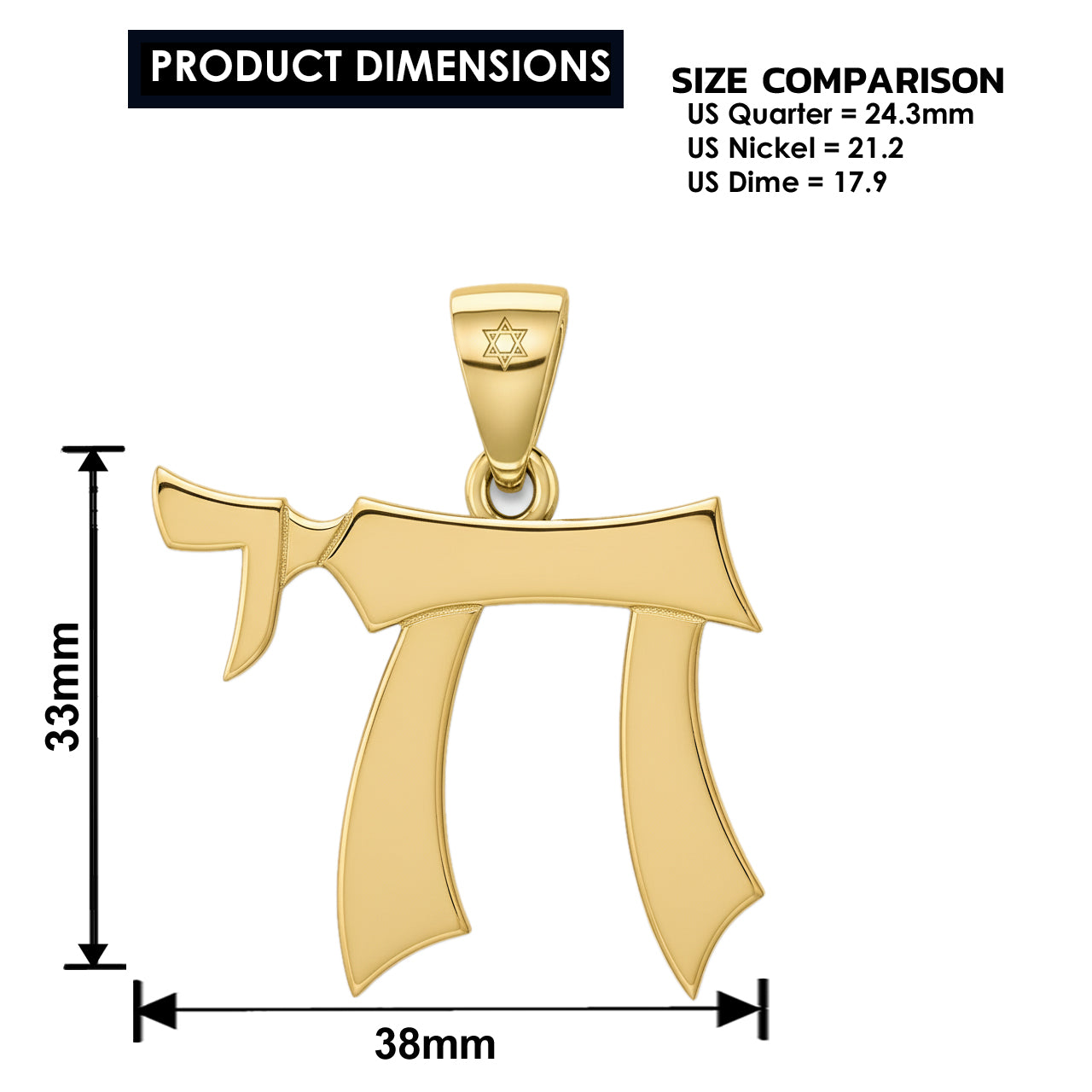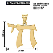 Men's Large 10K or 14K Yellow or White Gold Jewish Chai Sign of Life Pendant, 32mm