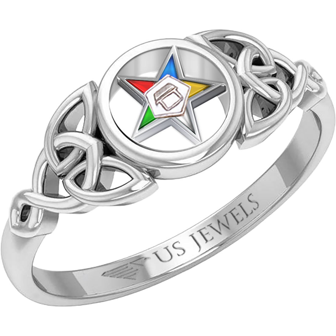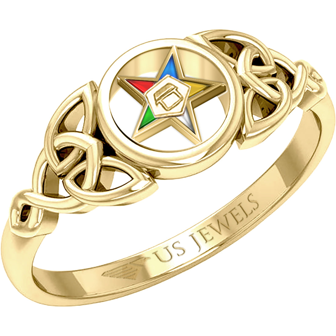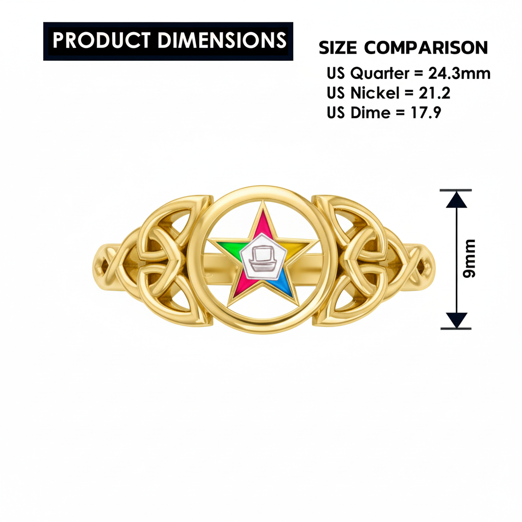 US Jewels Women's Masonic 10k. or 14k Yellow or White Gold 9mm Eastern Star Ring