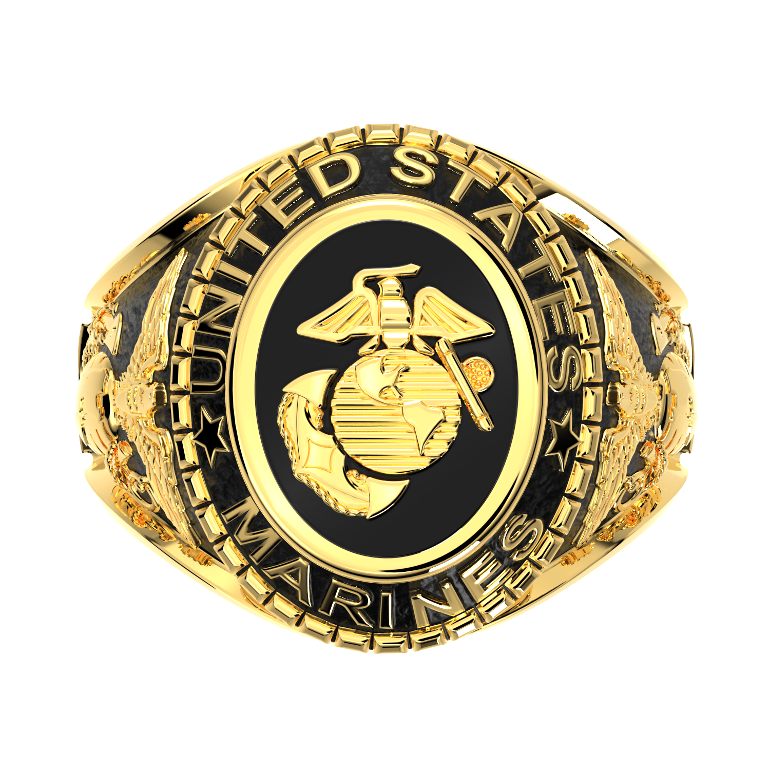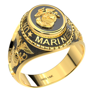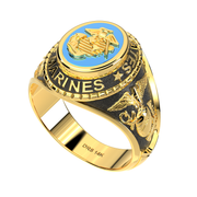 Customizable Men's Antiqued 10k or 14k Yellow or White Gold United States Marine Corps Military Solid Back Ring