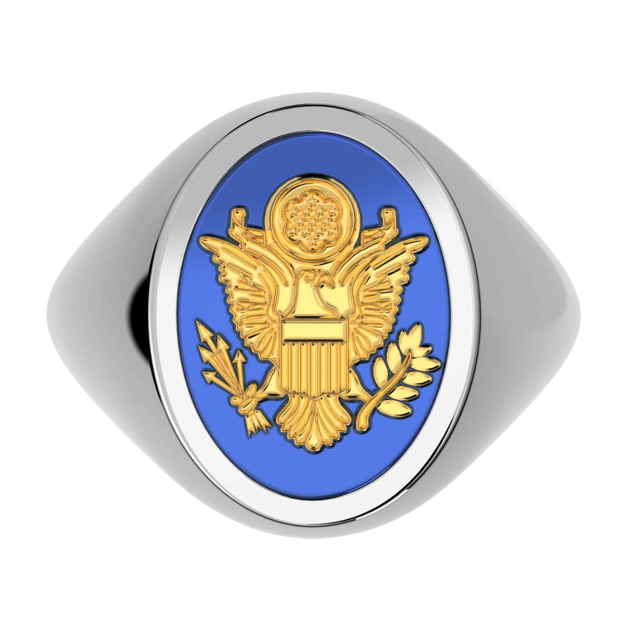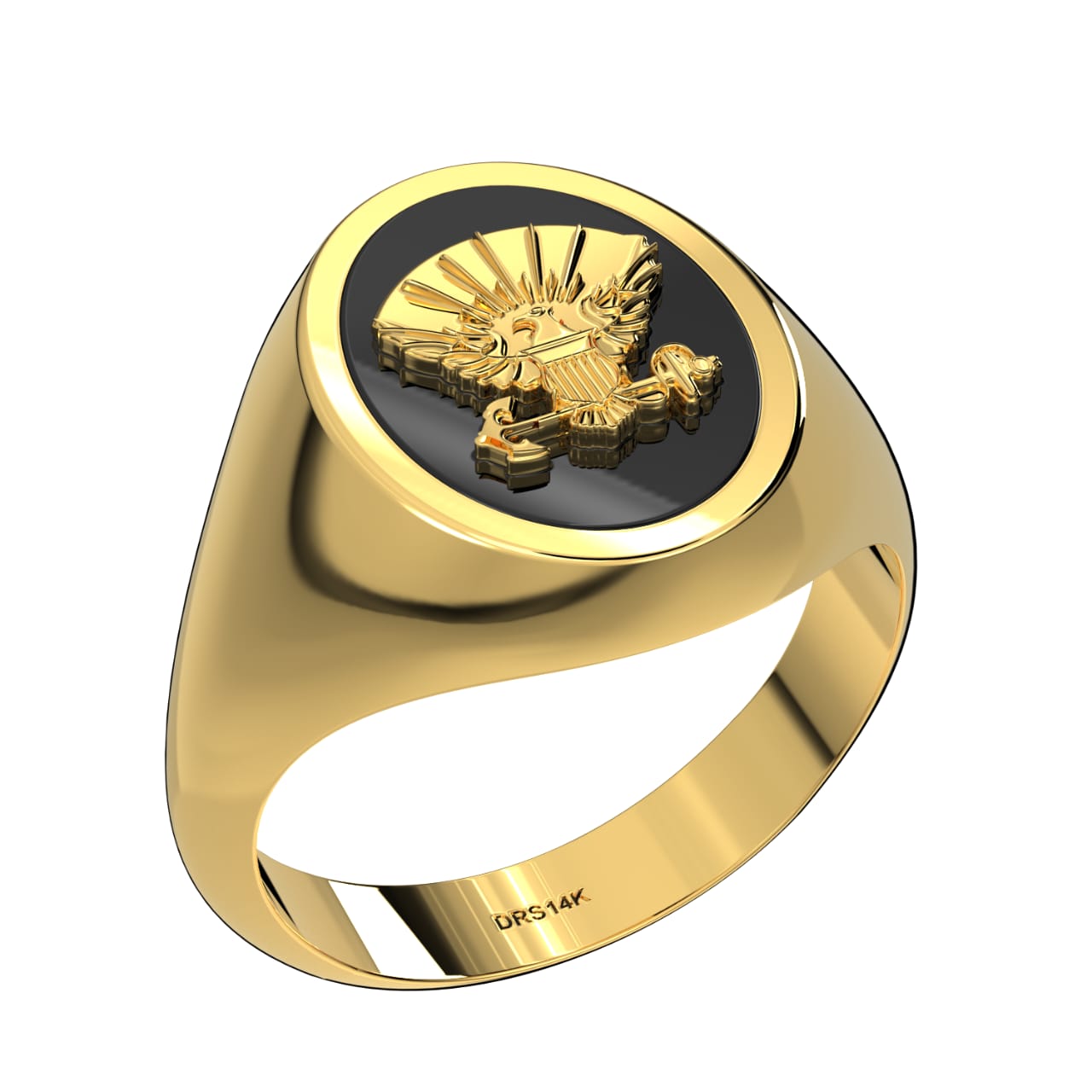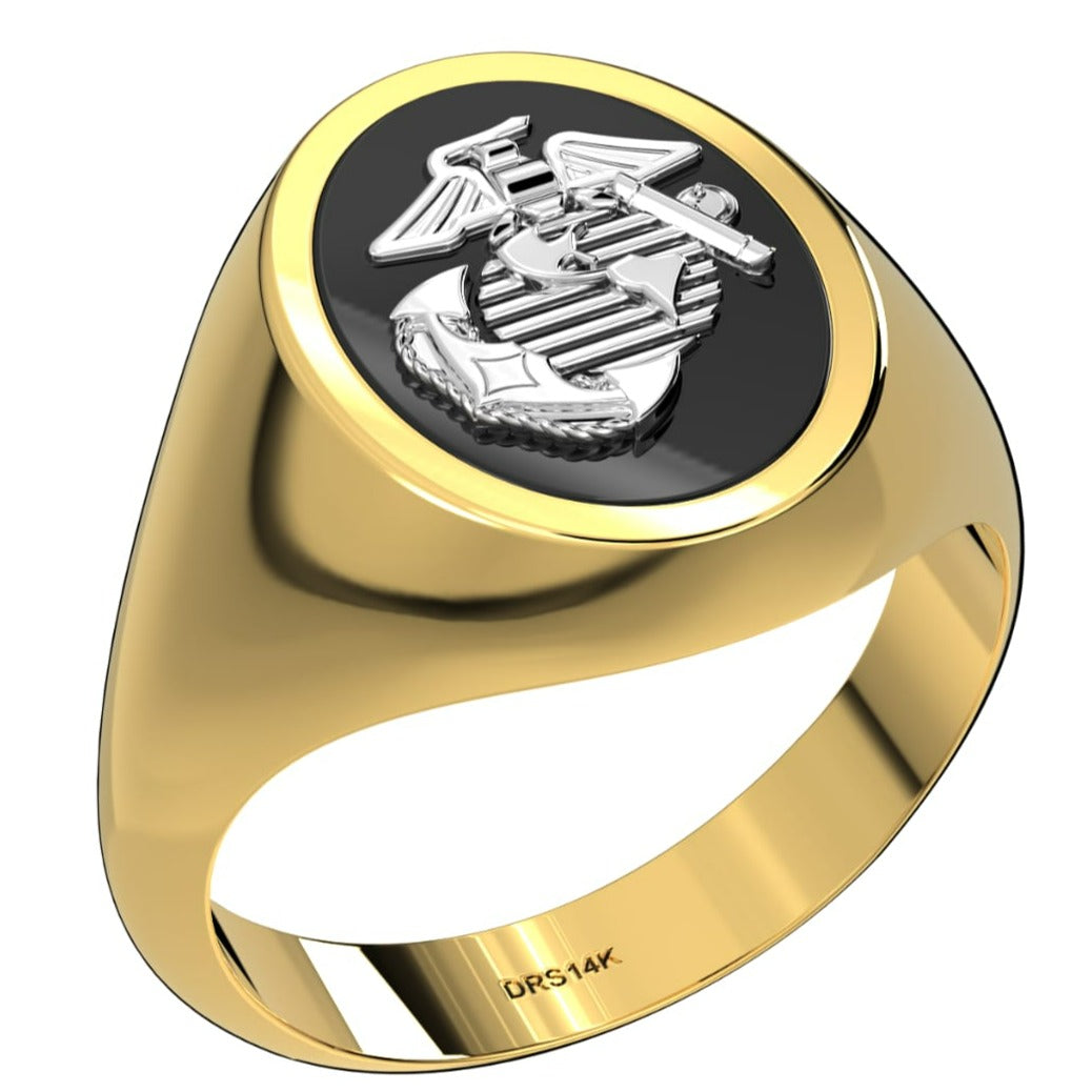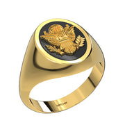 Customizable Oval 10k or 14k Gold US Military Solid Back Ring, Army, Marine Corps, Navy