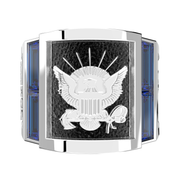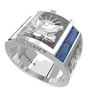 Men's Heavy 925 Sterling Silver US Navy Ring Band w/ Synthetic Sapphires