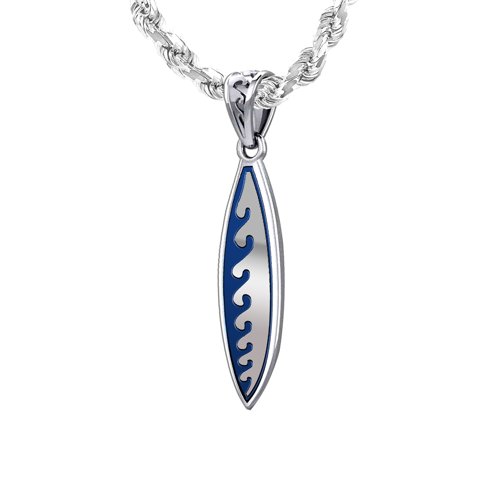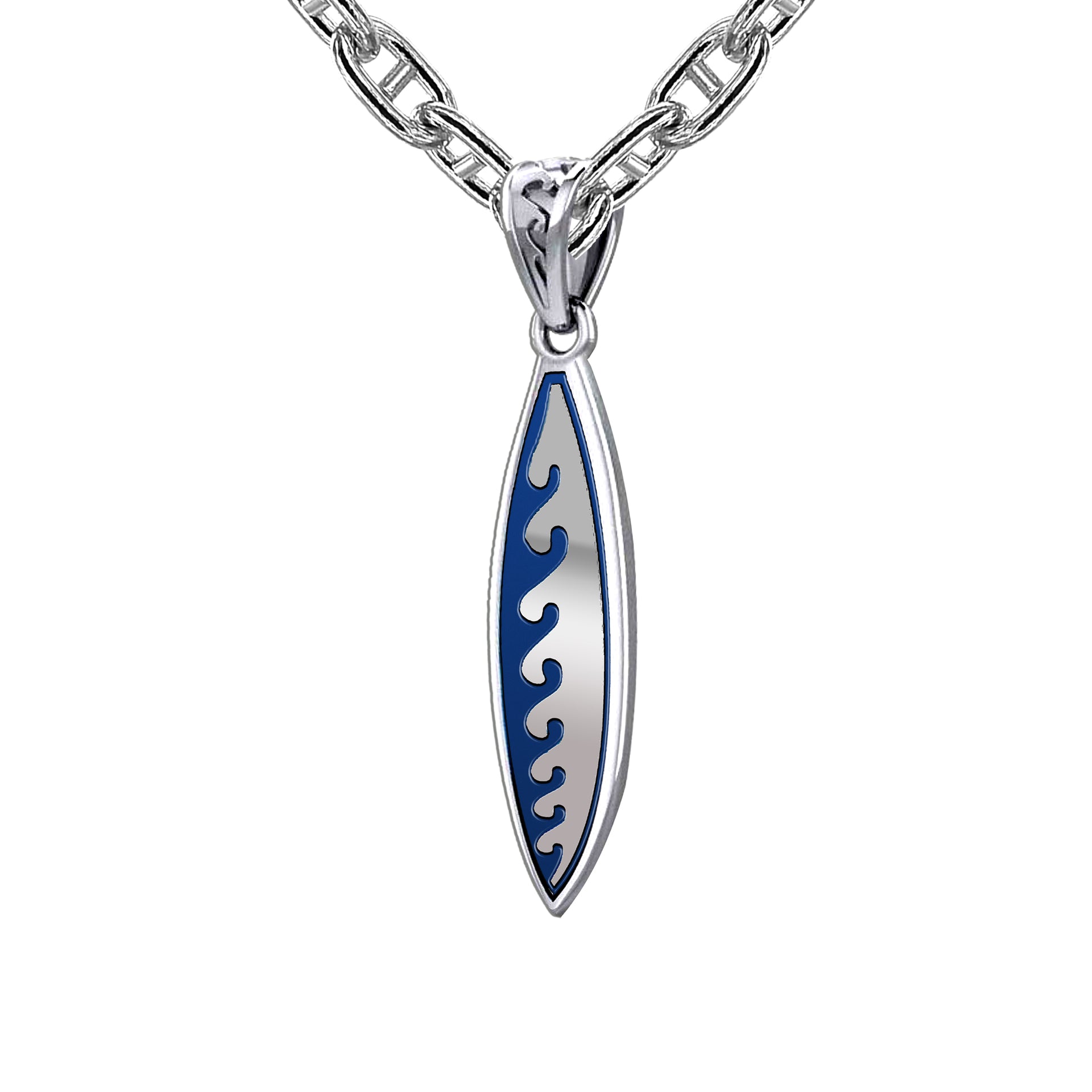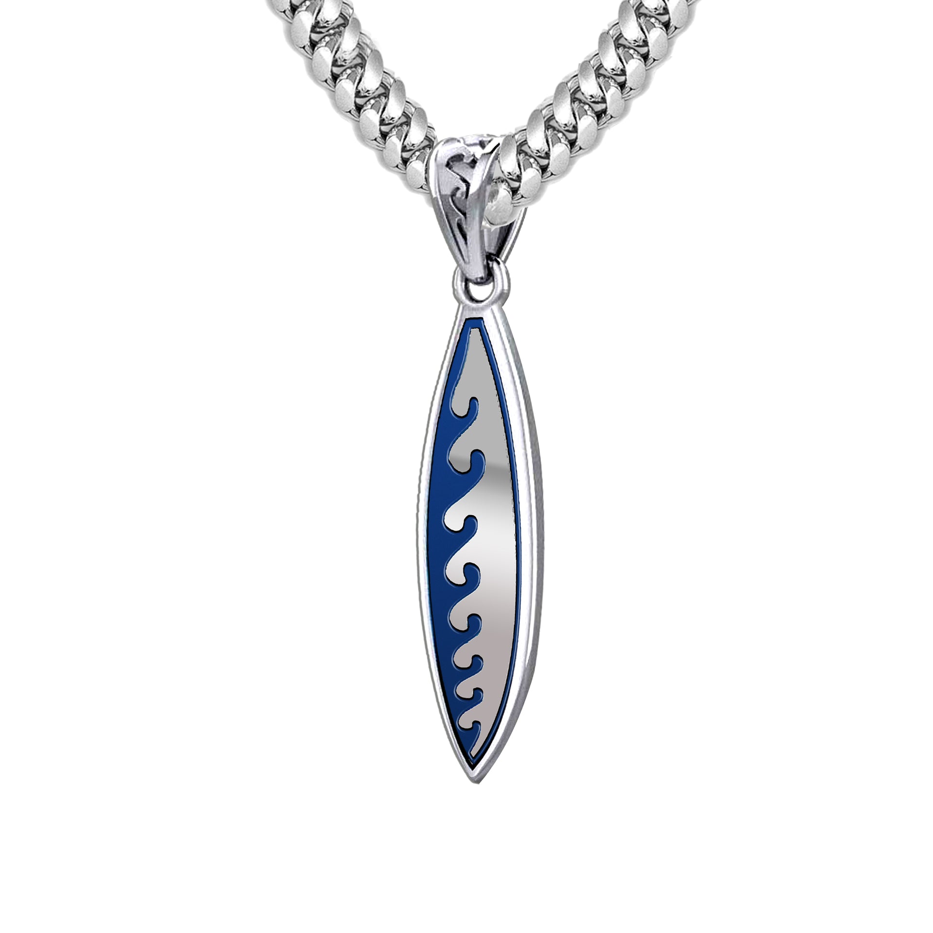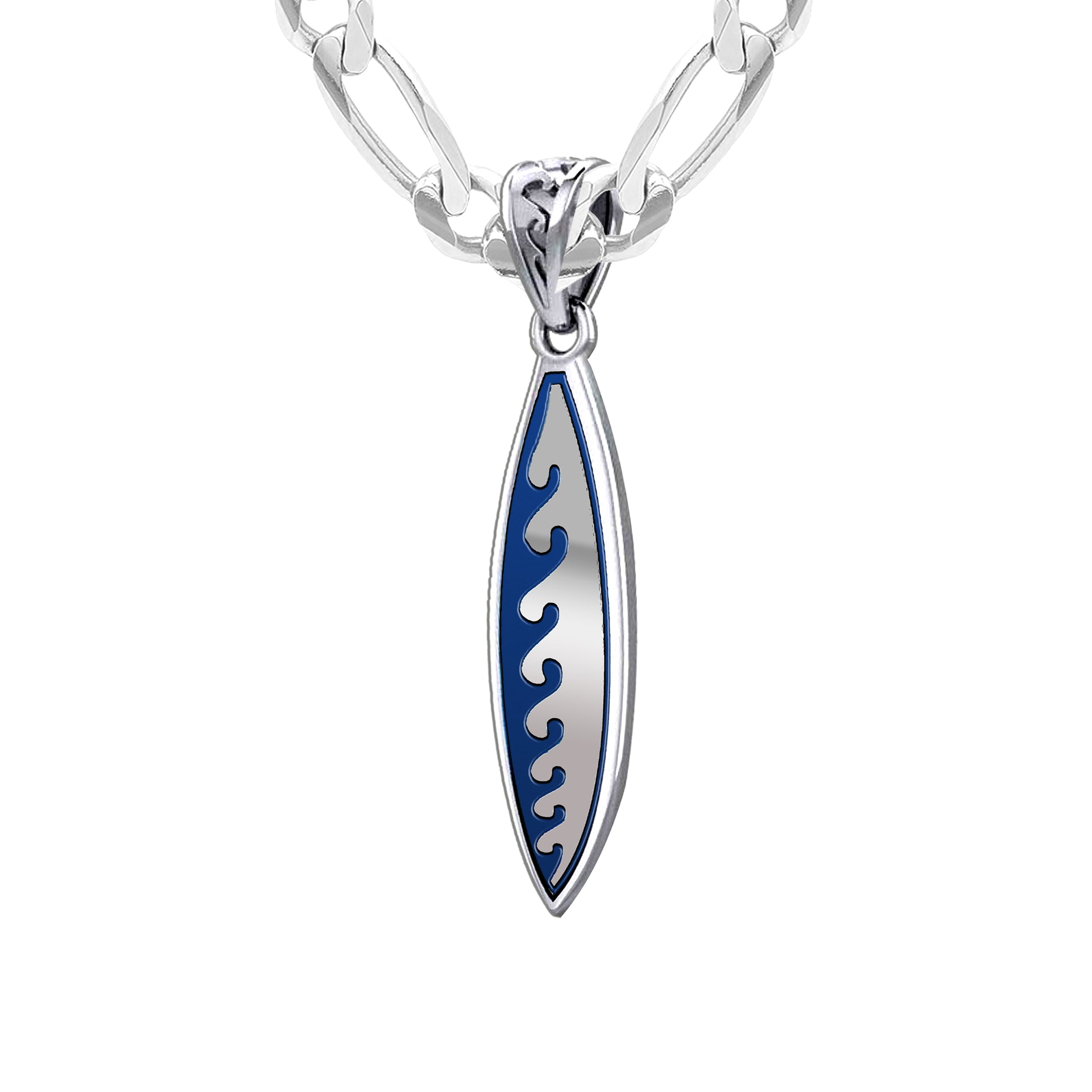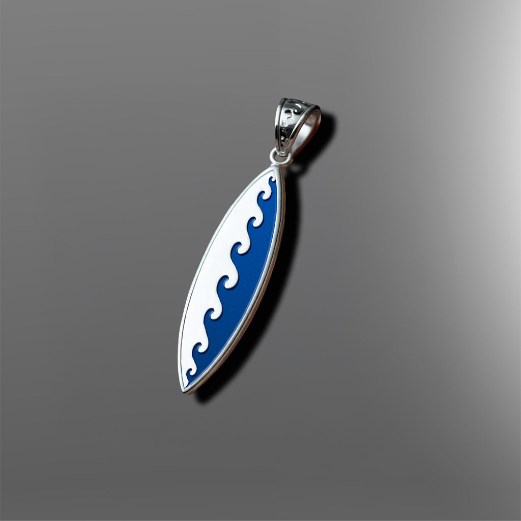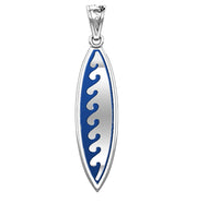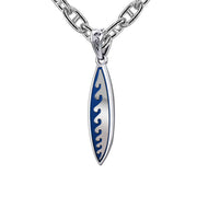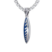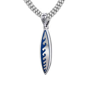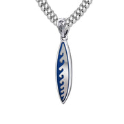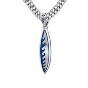 Men's Large 925 Sterling Silver Wave Surfboard Pendant Necklace, 38mm