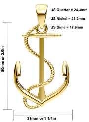 Men's XL Heavy Solid 2in 14K Yellow Gold Nautical Maritime Anchor Pendant Necklace, 50mm