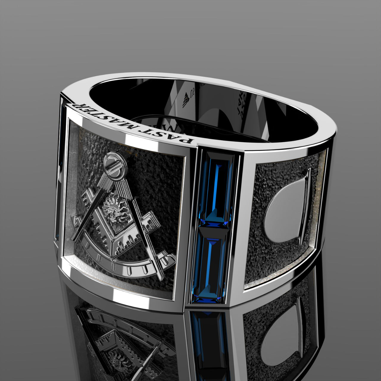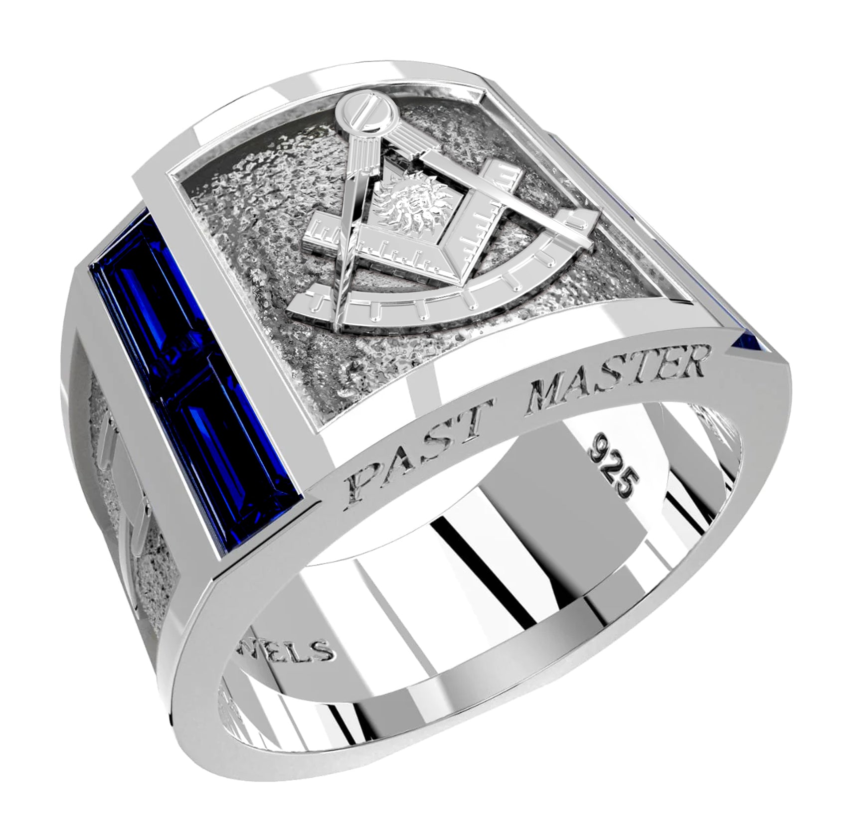 Men's Past Master 925 Sterling Silver Synthetic Sapphire Freemason Masonic Ring