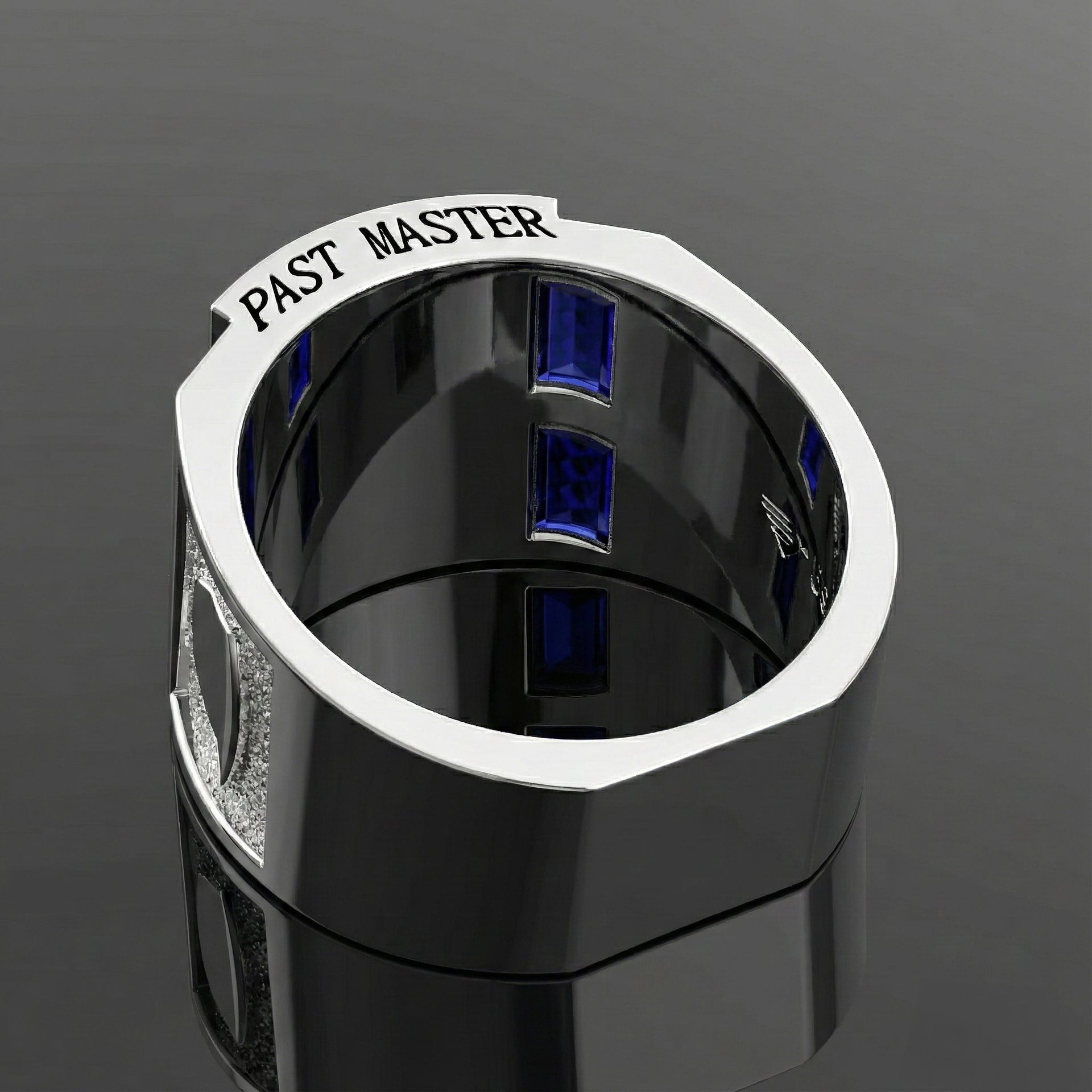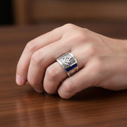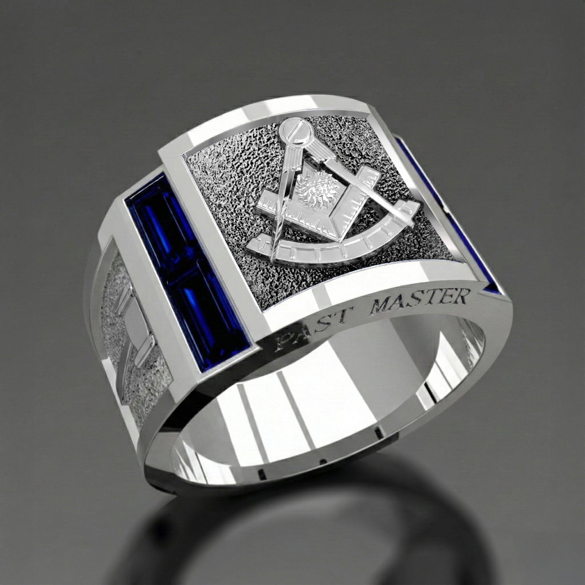 Men's Past Master 925 Sterling Silver Lab-Grown Sapphire Freemason Masonic Ring