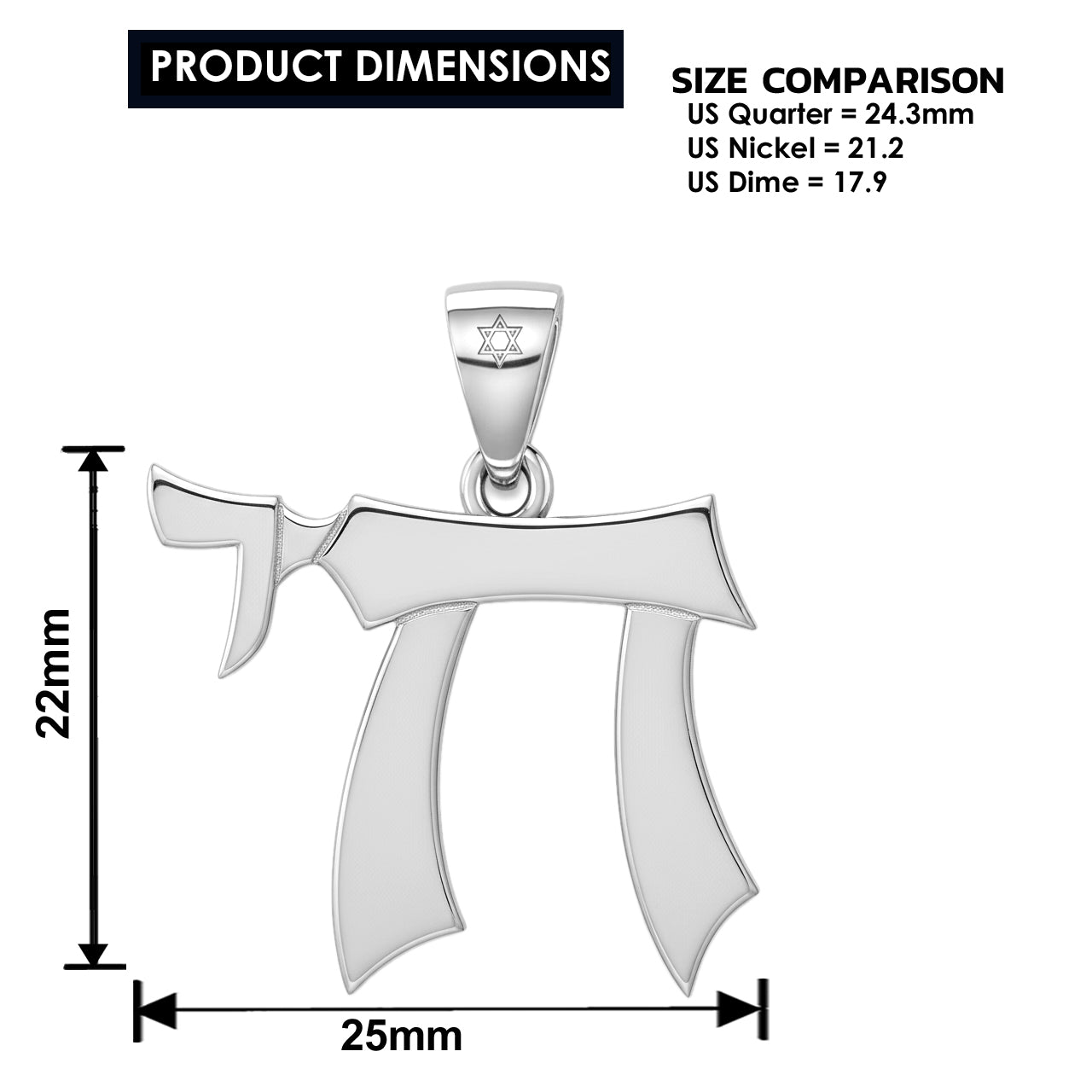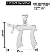 Ladies 925 Sterling Silver 22mm Jewish Chai Sign of Life Pendant Necklace