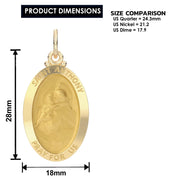 Men's 14K Gold Solid Anthony Medal Pendant Necklace, 28mm