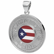 Men's 10k or 14k Yellow or White Gold Puerto Rican Pride Pendant Necklace, 33mm
