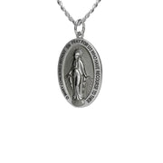 Small Ladies 925 Sterling Silver Oval Miraculous Virgin Mary Antique Finish Pendant Necklace, 21mm