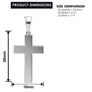 Men's Solid 4mm x 4mm 925 Sterling Silver Latin Christian Cross Pendant Necklace, 26mm