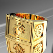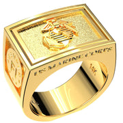 10k or 14k Yellow or White Gold US Marine Corps Solid Back Ring