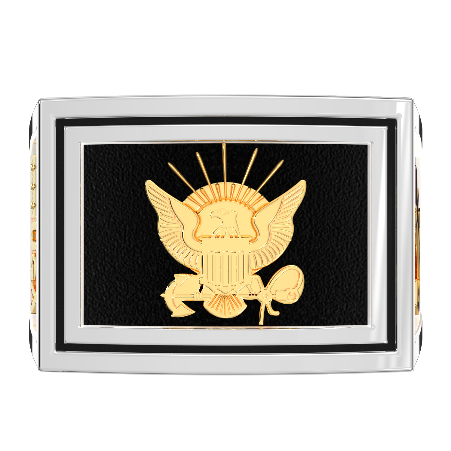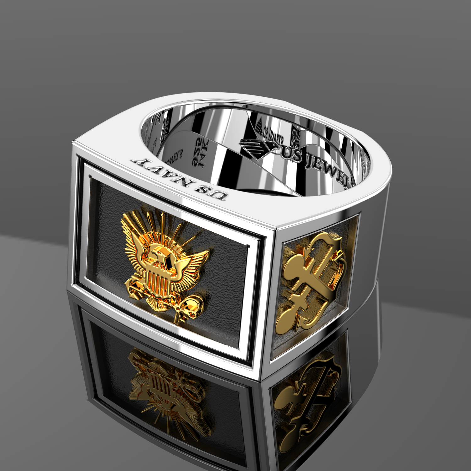 925 Sterling Silver & 14k US Navy Solid Back Ring