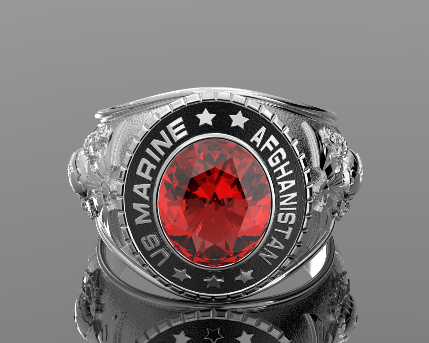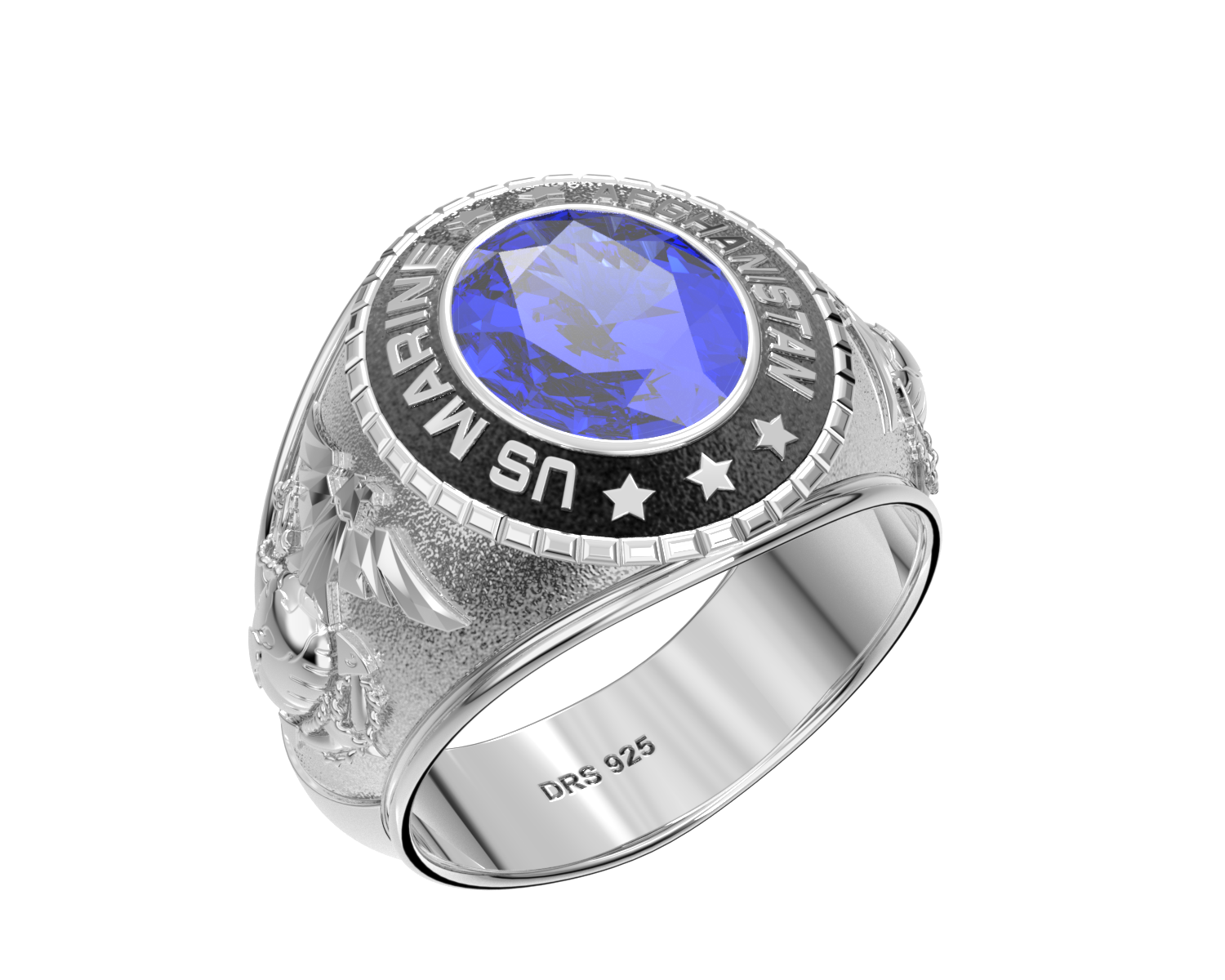 Customizable Afghanistan Men's 925 Sterling Silver US Marine Corps Military Solid Back Ring