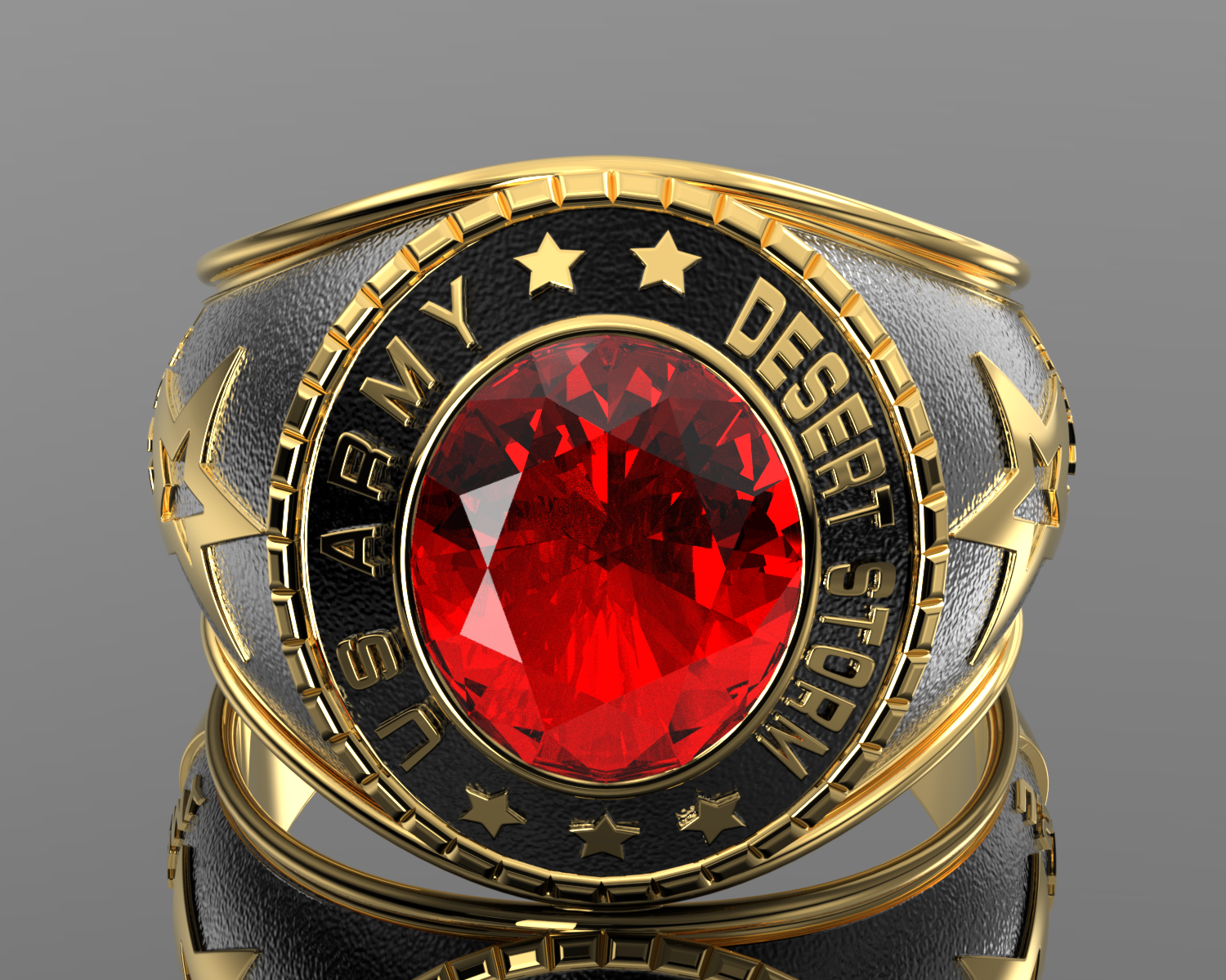 Customizable Desert Storm Men's 10k or 14k Yellow or White Gold US Army Military Solid Back Ring