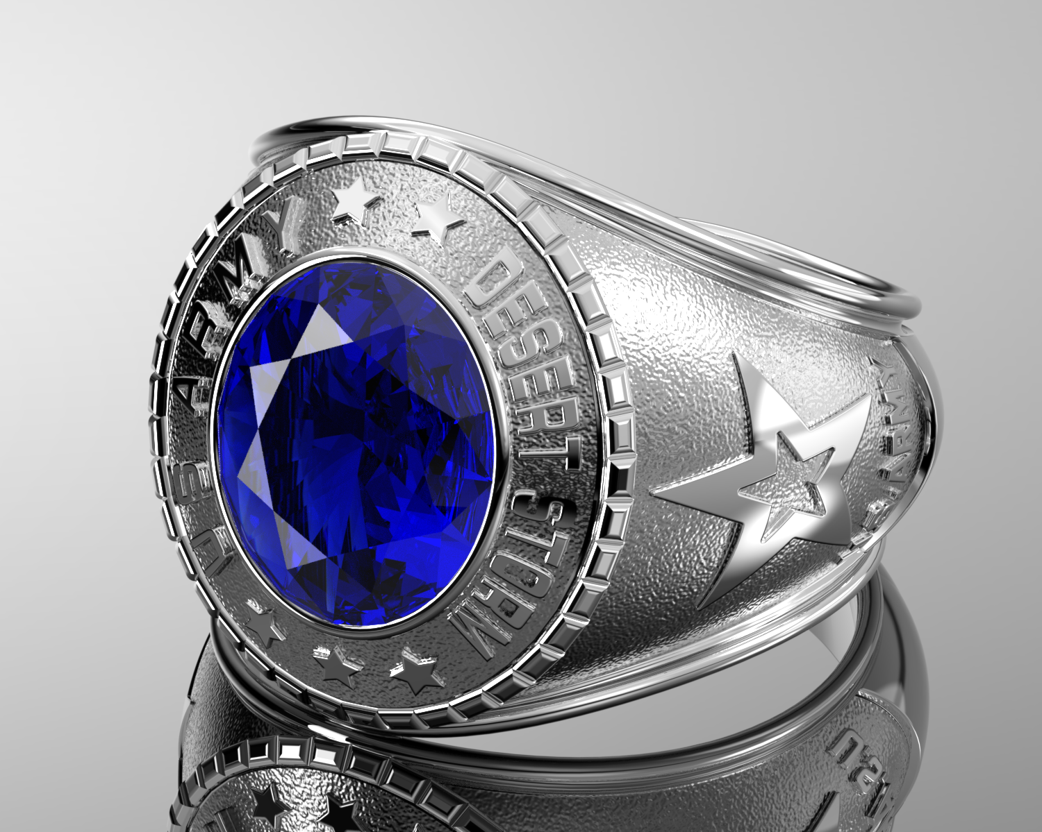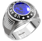Customizable Desert Storm Men's 925 Sterling Silver US Army Military Solid Back Ring
