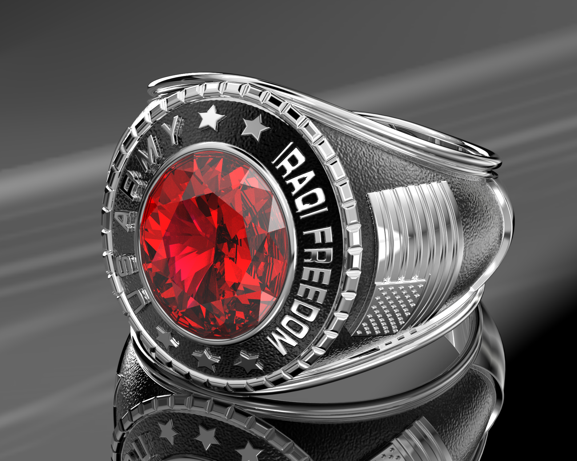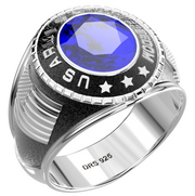 Customizable Iraqi Freedom Men's 925 Sterling Silver US Army Military Solid Back Ring