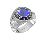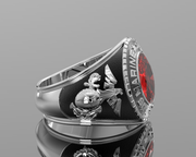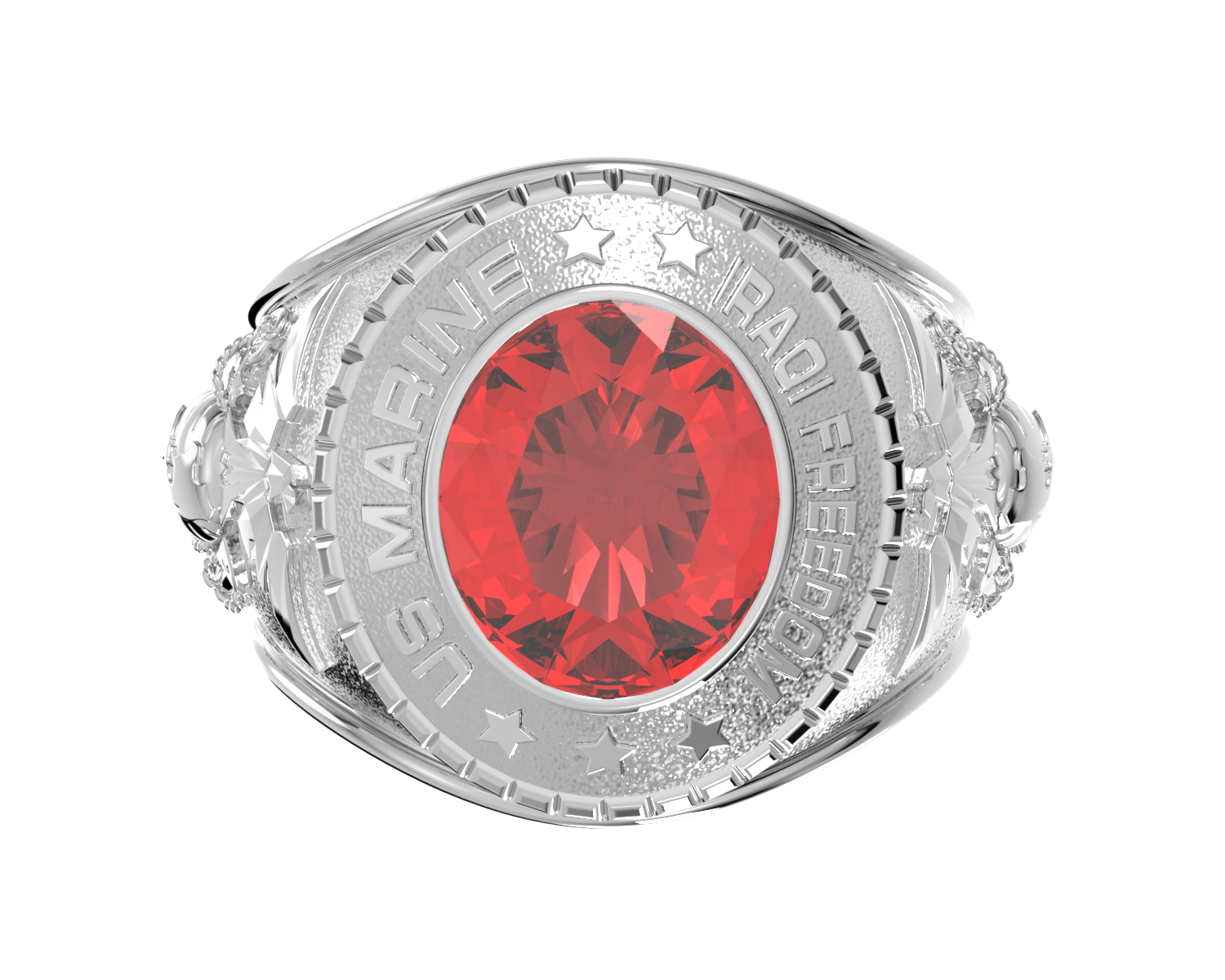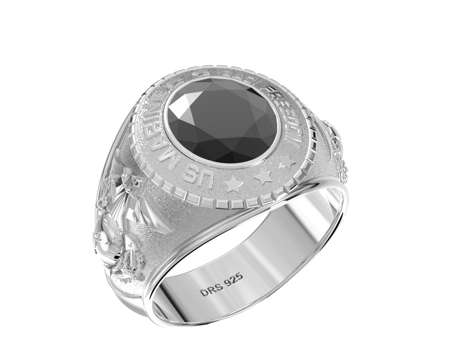 Customizable Iraqi Freedom Men's 925 Sterling Silver US Marine Corps Military Solid Back Ring