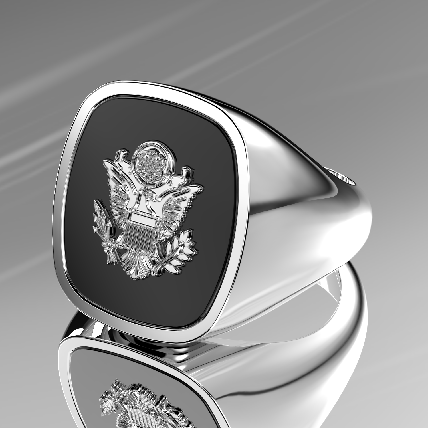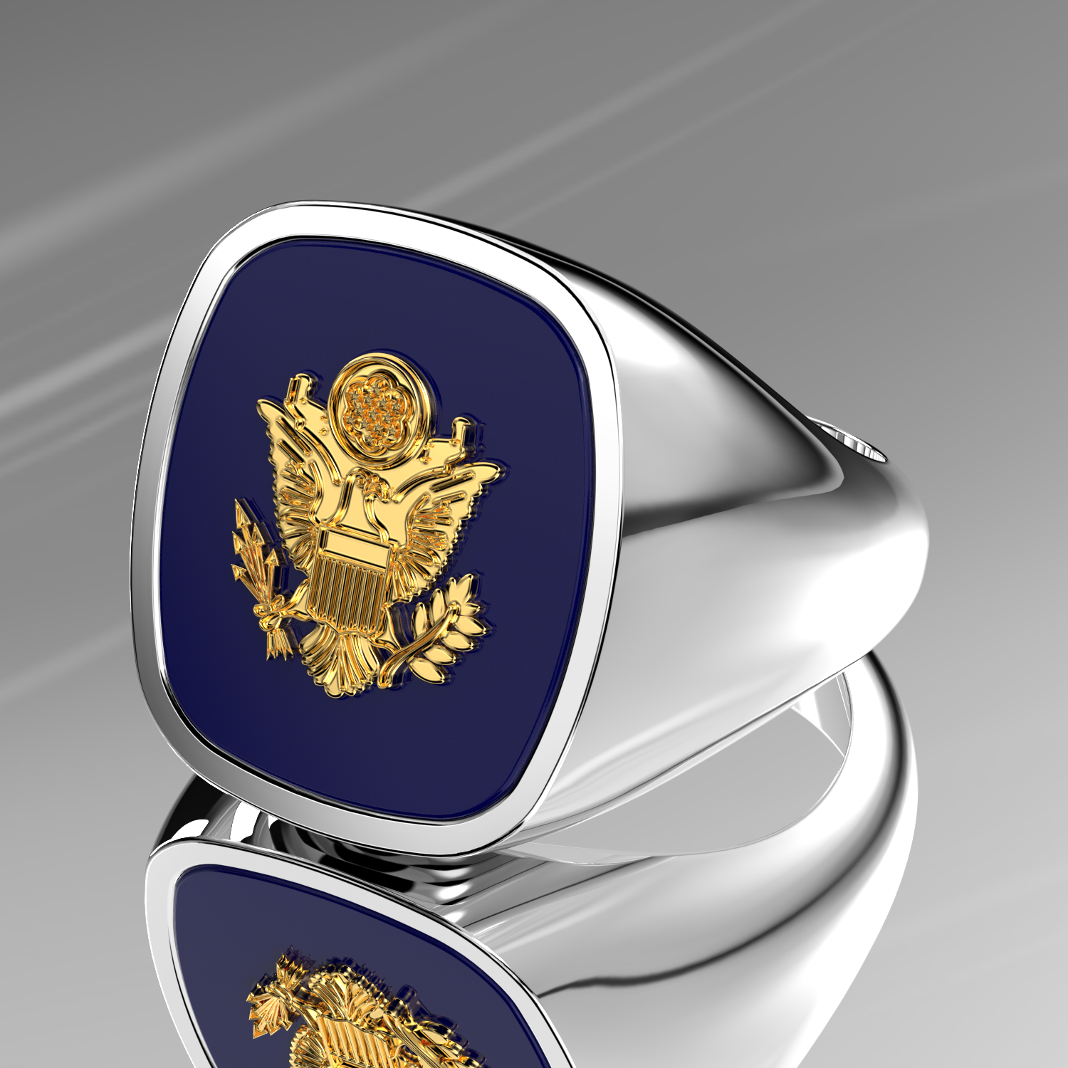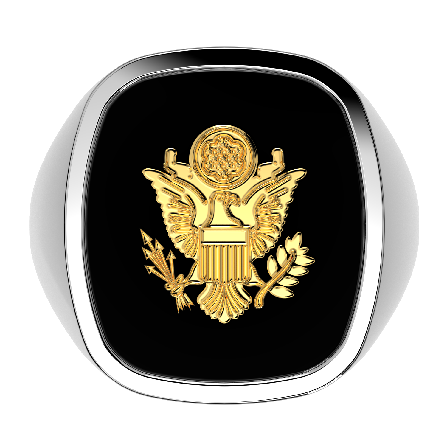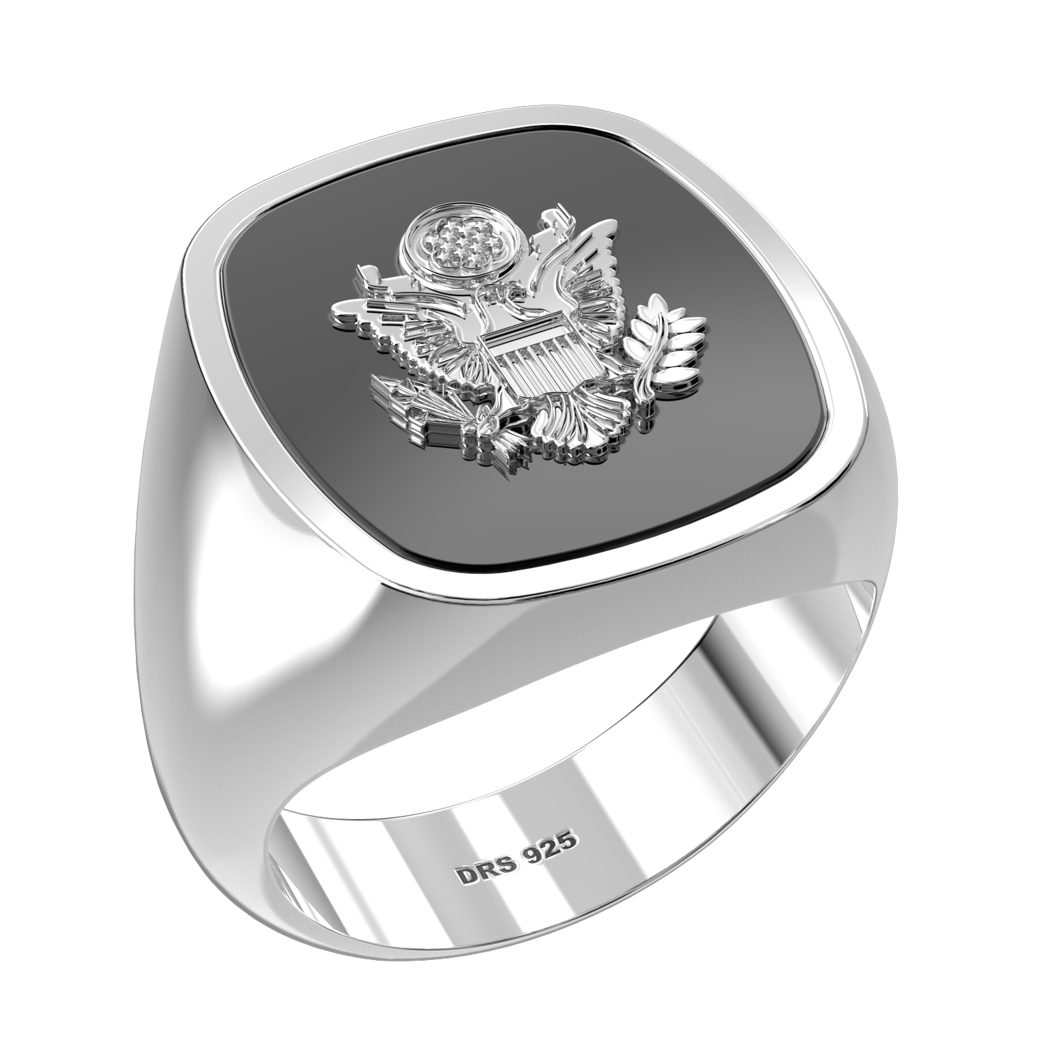 Customizable Solid Back 925 Sterling Silver US Army Military Ring