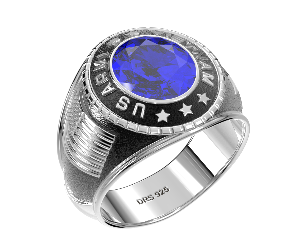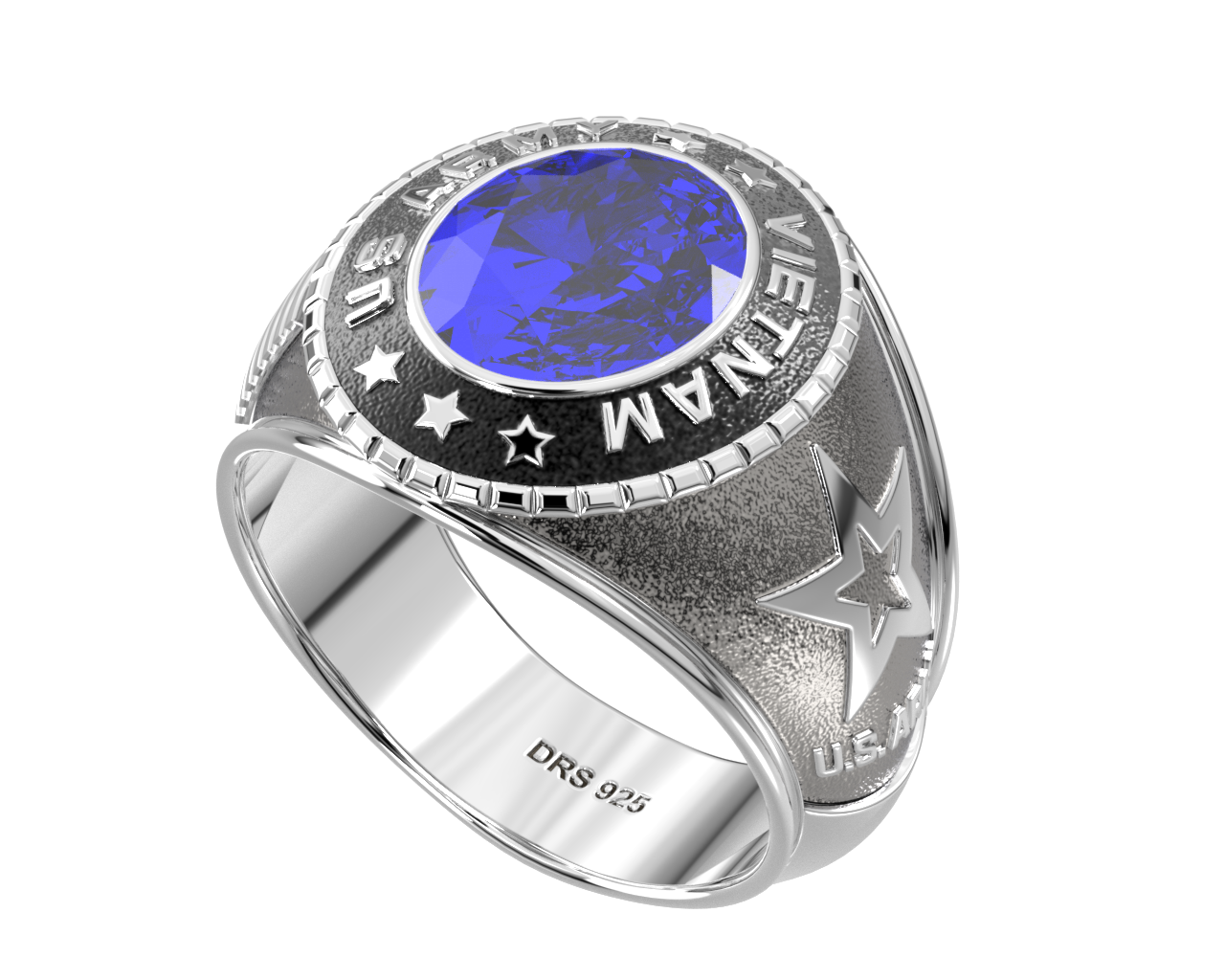 Customizable Vietnam Men's 925 Sterling Silver US Army Military Solid Back Ring
