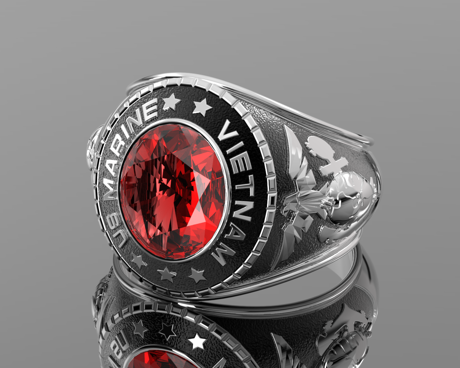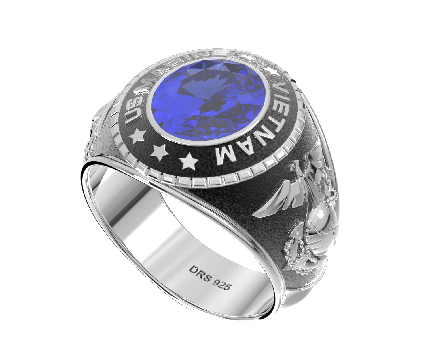 Customizable Vietnam Men's 925 Sterling Silver US Marine Corps Military Solid Back Ring