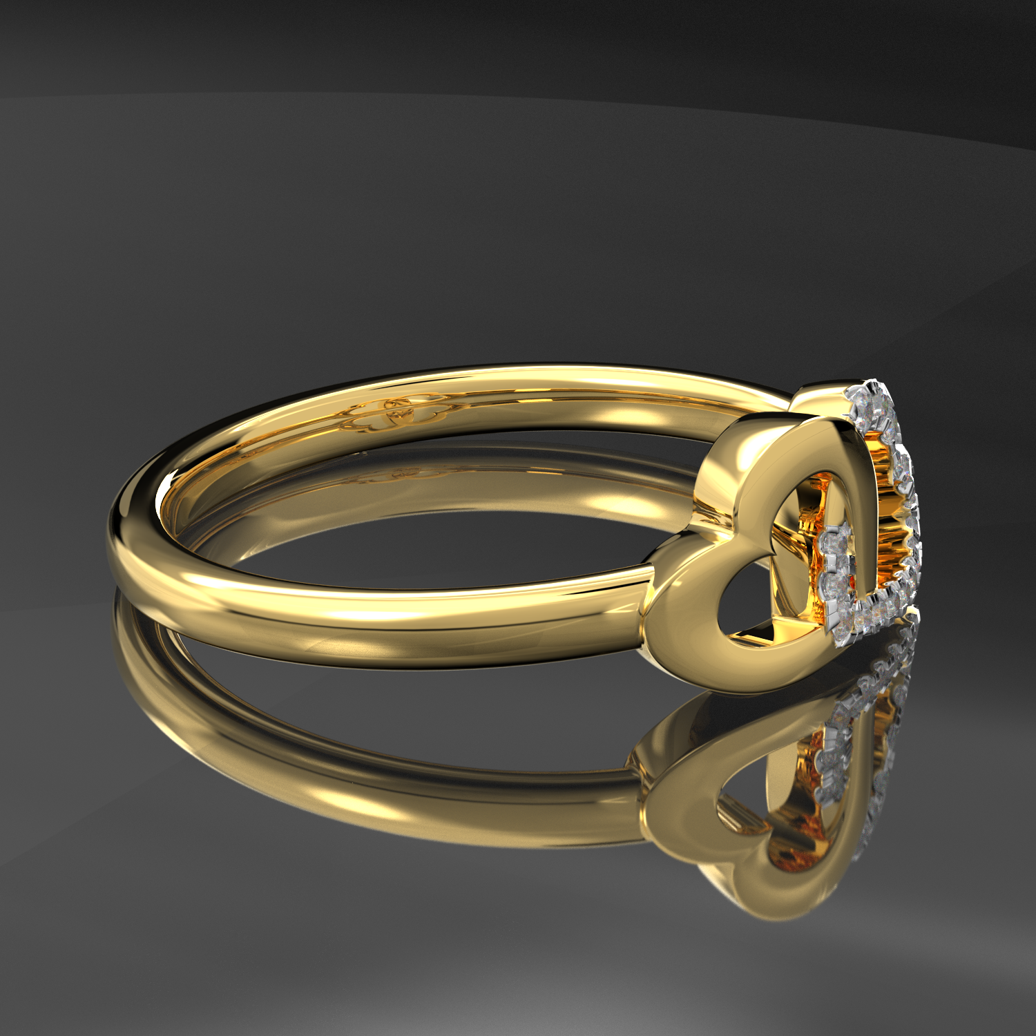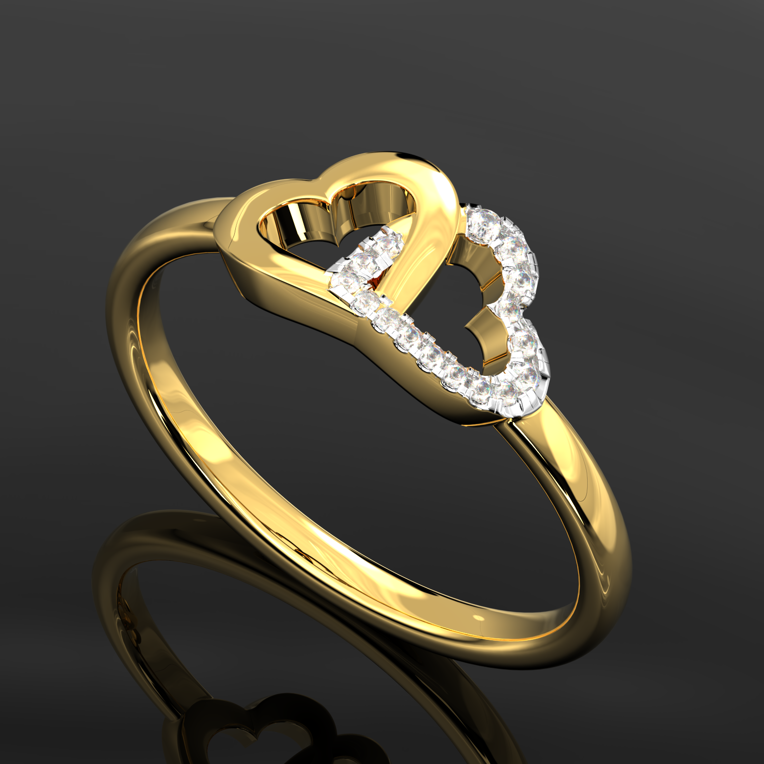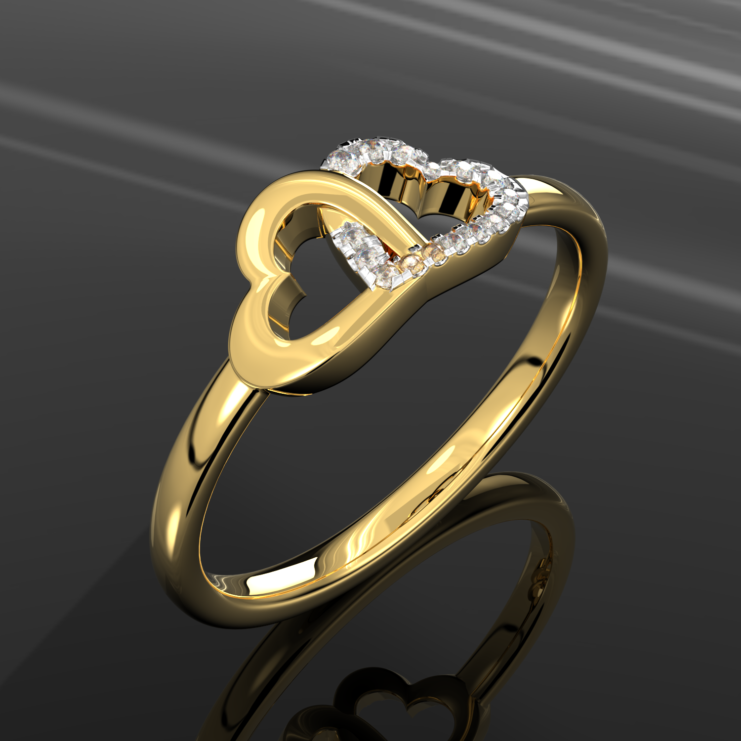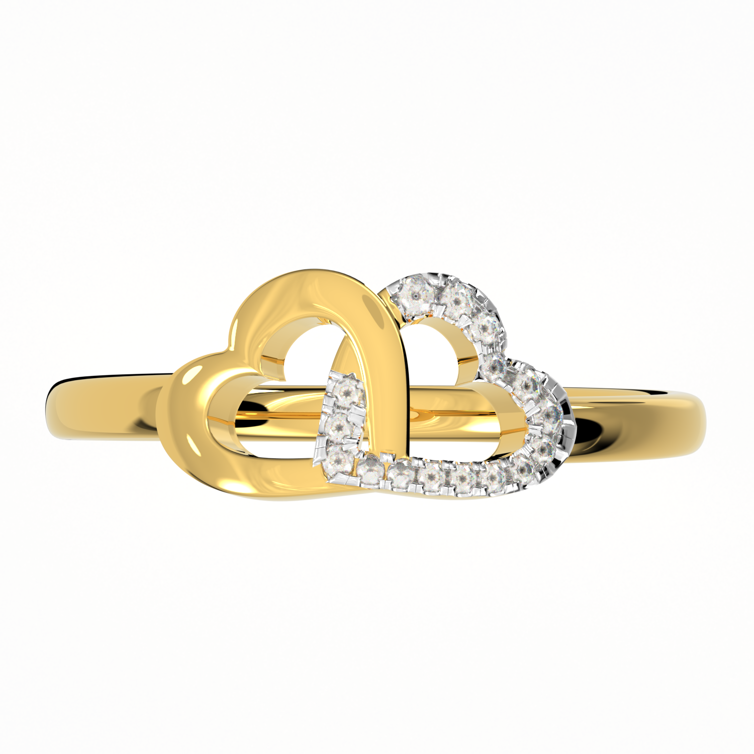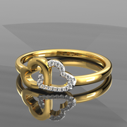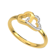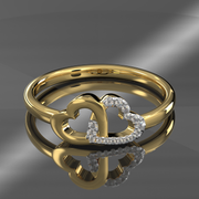 Ladies 14K Yellow Gold Double Dual Heart Diamond Ring