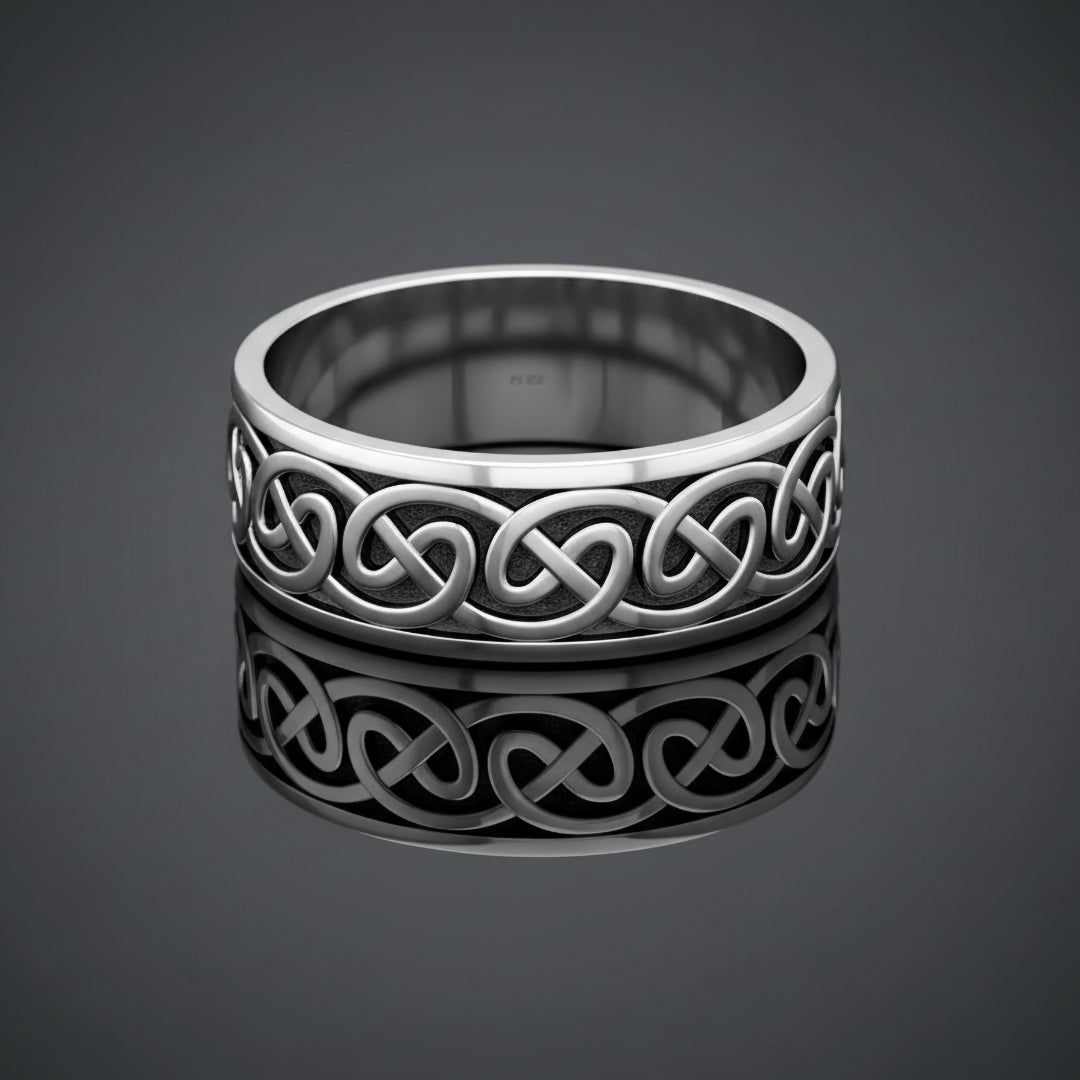 Men's 925 Sterling Silver Irish Celtic Knot Ring Band, 9mm