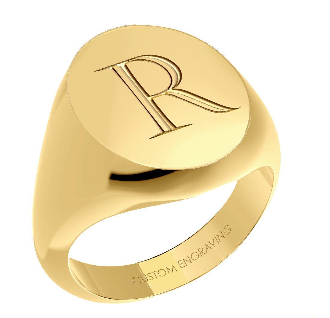 Introducing our Customizable Signet Ring in 10k or 14k gold, an elegant and timeless piece of jewelry that allows you to express your personal style, family heritage, or commemorate a special milestone. Personalized with your choice of engraving, such as initials, monograms, family crests, or symbols that hold special meaning to you.
