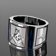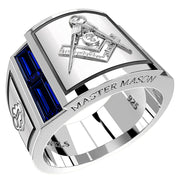Men's 925 Sterling Silver Synthetic Sapphire Master Mason Masonic Ring