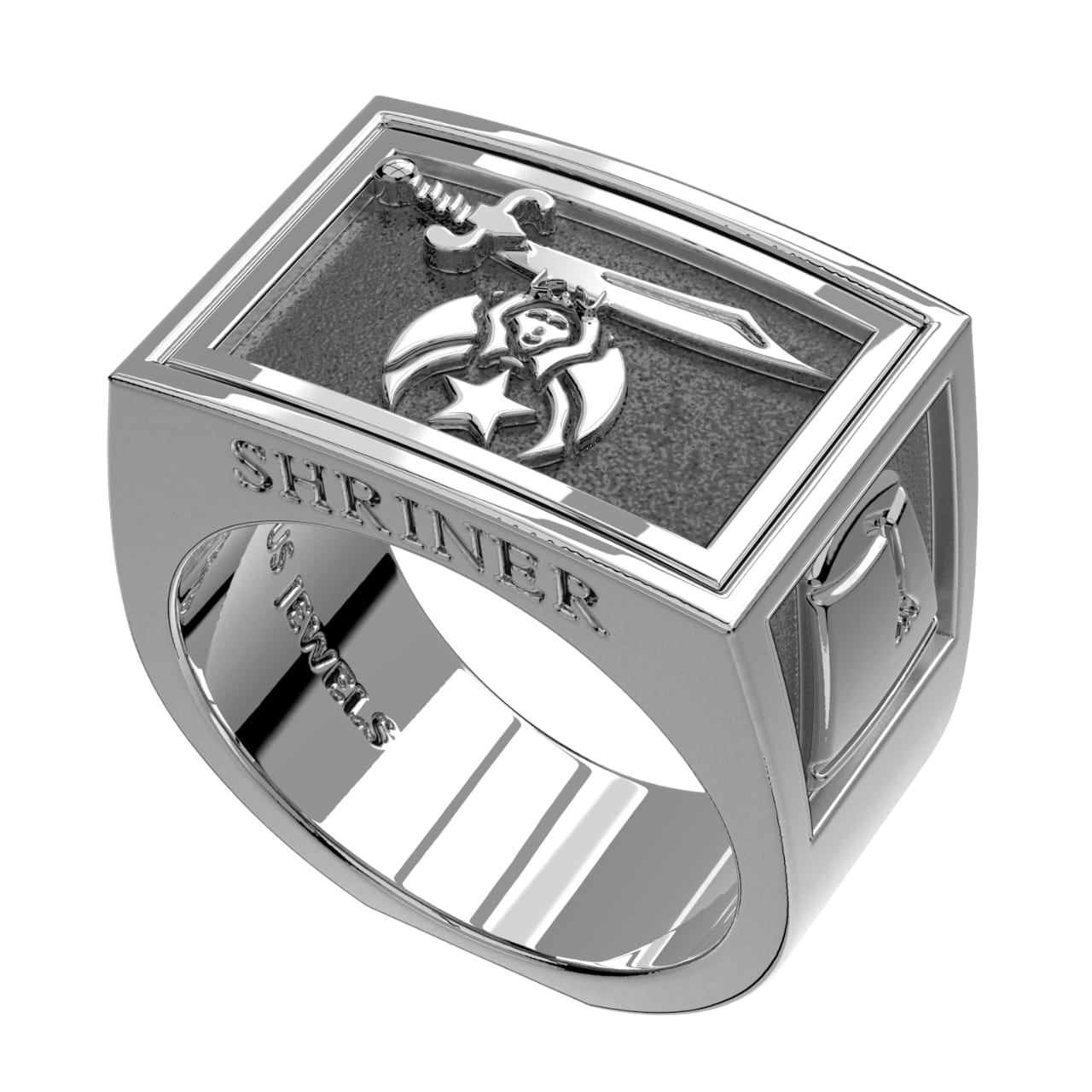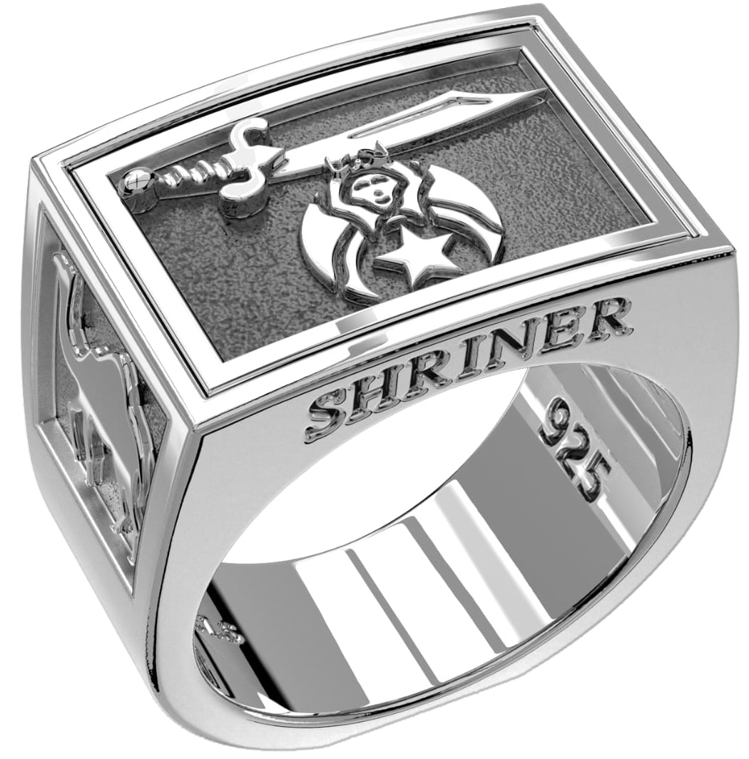 A brand new Shriner ring band in 925 sterling silver. The Ancient Arabic Order of the Nobles of the Mystic Shriner, also commonly known as Shriners, established in 1870, is an appendant body to Freemasonry, based in the United States. In 2010 they changed its name to Shriners International, now covering nearly 200 temples (chapters) across North America, South America, Europe and Southeast Asia. The organization is best known for the Shriners Hospitals for Children it administers and the red fezzes that members wear. Made in USA.