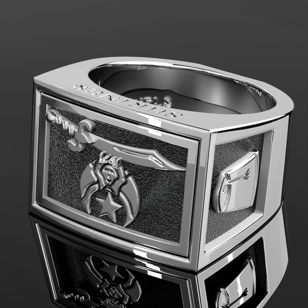 Men's Heavy 925 Sterling Silver Freemason Shriner Ring Band