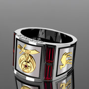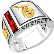 Men's Shriner 925 Sterling Silver. and 14k Yellow Gold Lab Created Ruby Masonic Ring