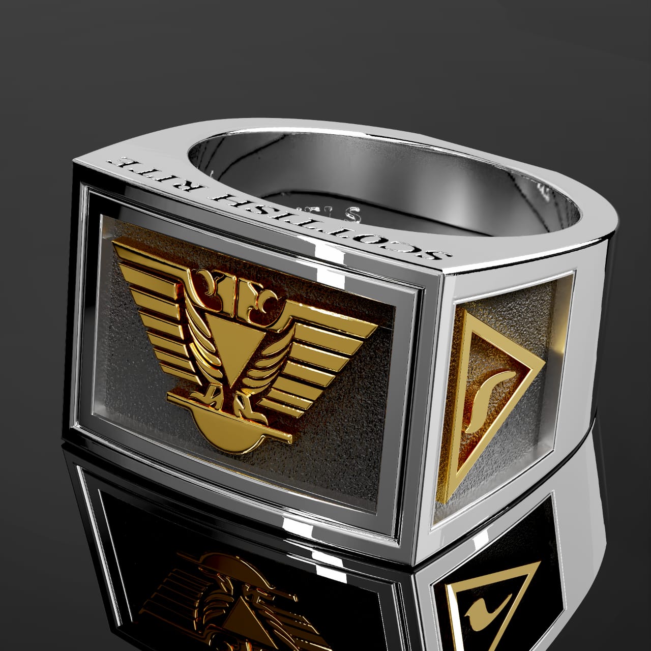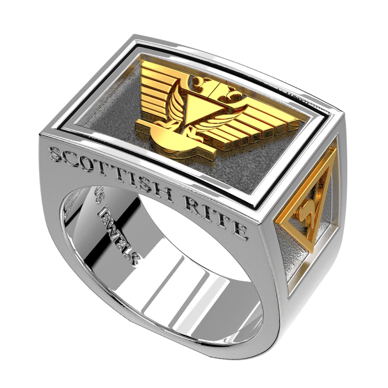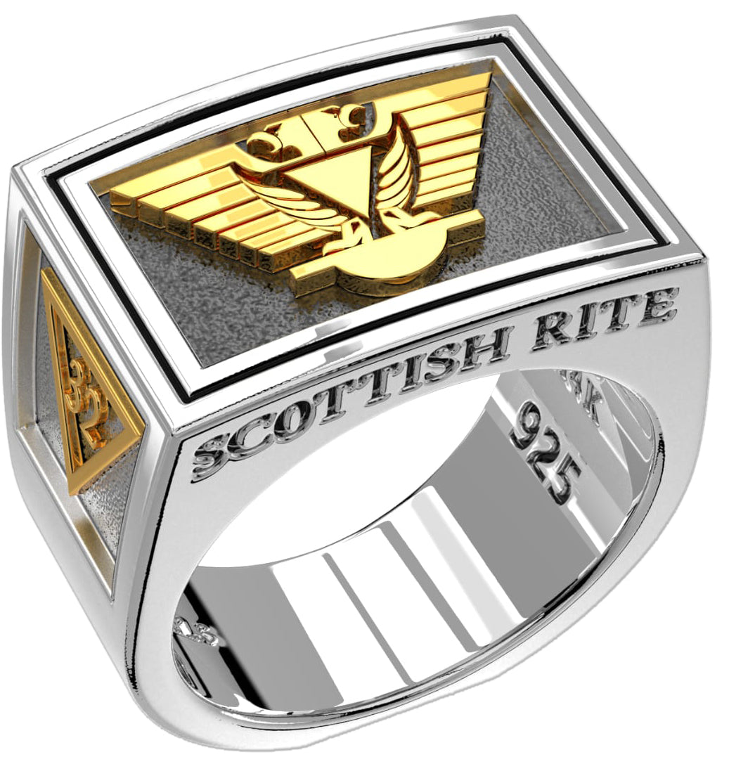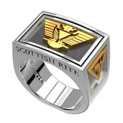 Men's Two-Tone Scottish Rite 925 Sterling Silver and 14k Yellow Gold Masonic Ring