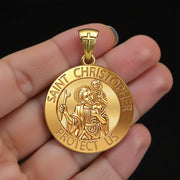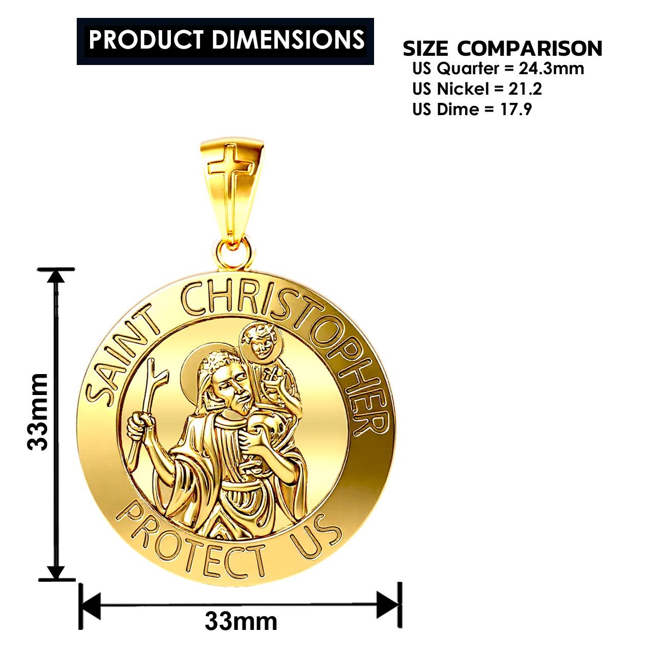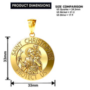 XL Heavy Solid 14K Yellow Gold St Saint Christopher Medal Round Pendant, 33mm