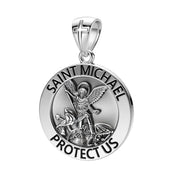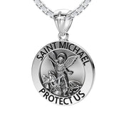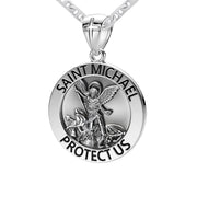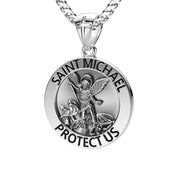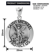 Men's 925 Sterling Silver Round Saint Michael Antique Finish Medal Pendant, 25mm