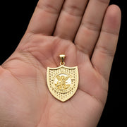 Men's 10k or 14K Yellow Gold Saint Michael Pendant Necklace, 36mm