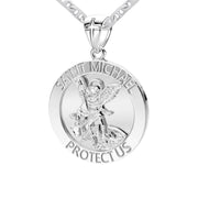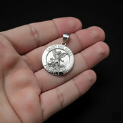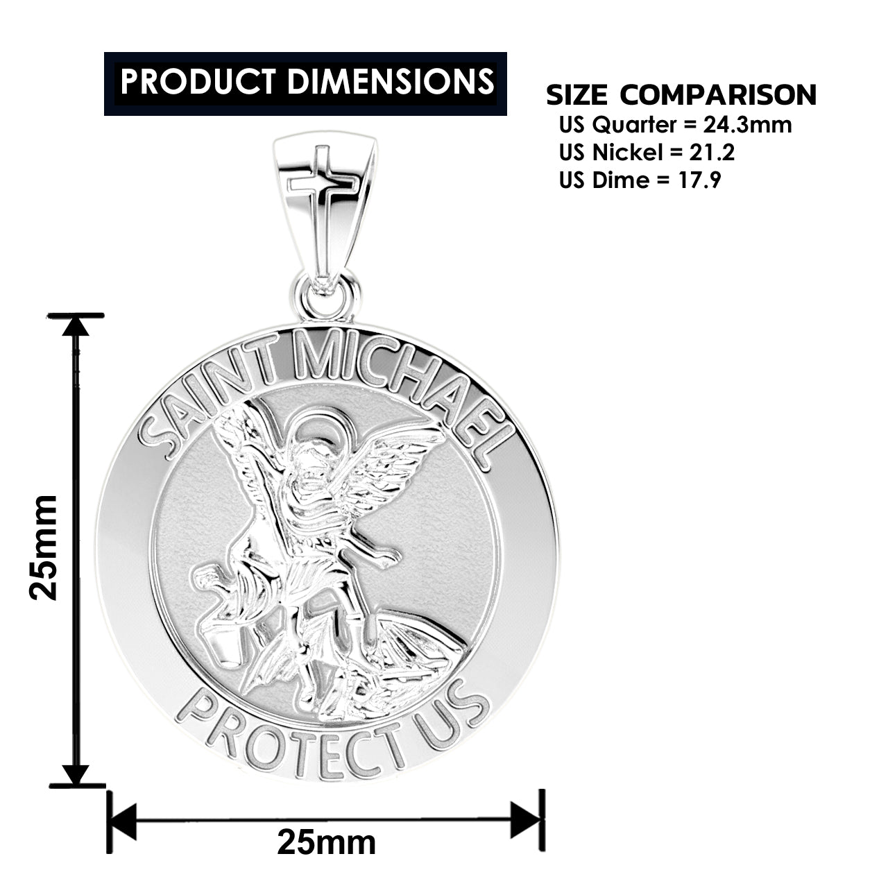 Men's 925 Sterling Silver Round Saint Michael Polished Finish Medal Pendant, 25mm